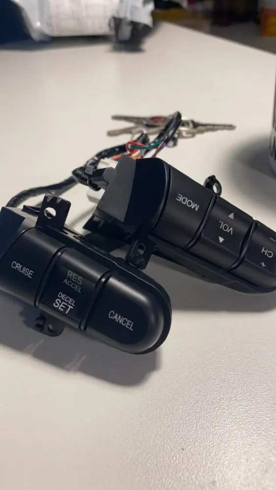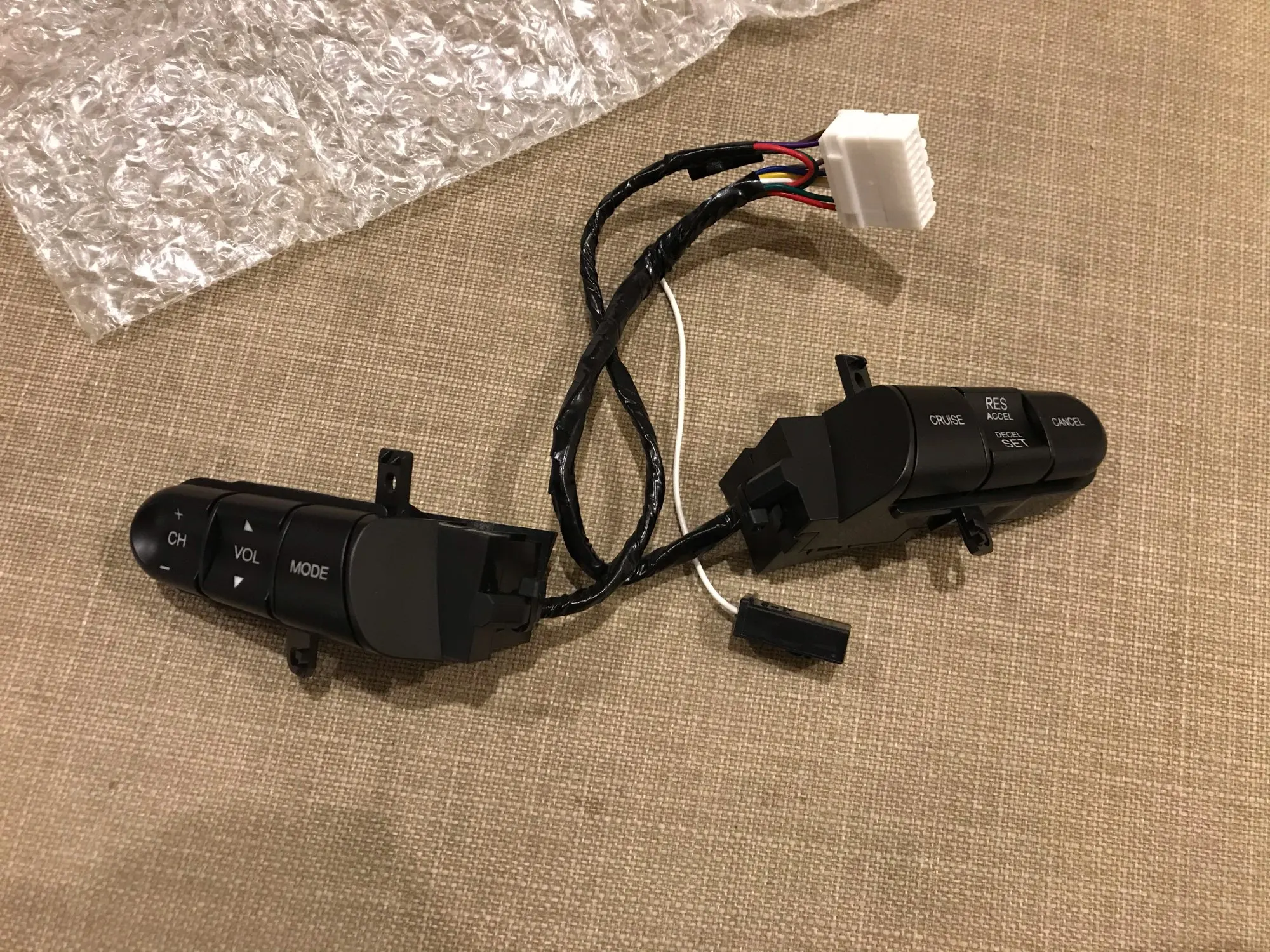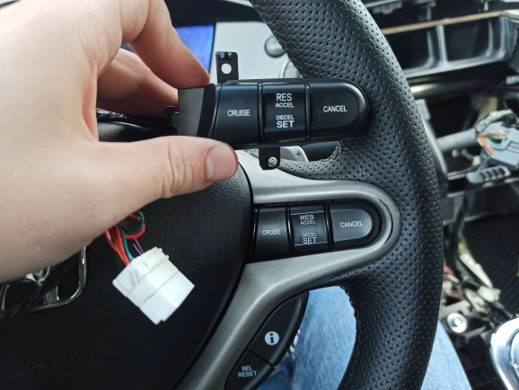 Не подходит на civic 5D 2008 года. т.к. отсутствуют еще 4 провода и фишка, которые идут на две кнопки справа внизу info и set\reset. В итоге использовал нужные мне кнопки переключения треков и громкости и поставил на свой руль. В общем 1500 рублей за две пластиковые кнопки))
