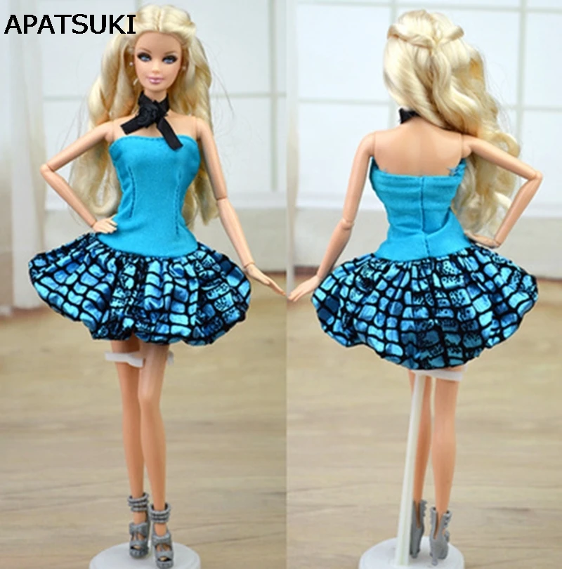 Аксессуары для кукол, синяя одежда для кукольного домика Барби, вечерние летние платья, короткие платья для куклы Барби