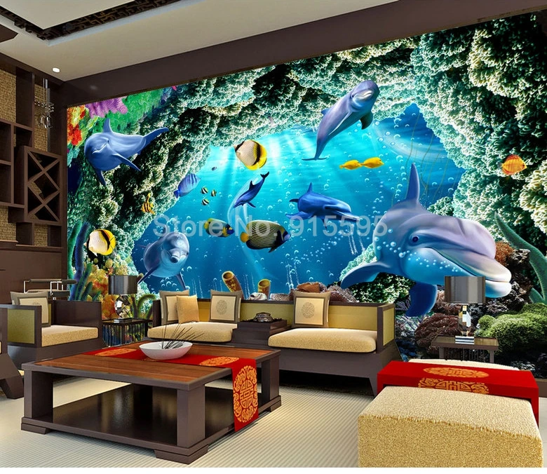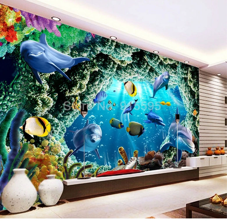 Пользовательские 3D фотообои для детской комнаты, мультяшный подводный мир, дельфин, настенная живопись для гостиной, спальни, Настенные обои, Декор