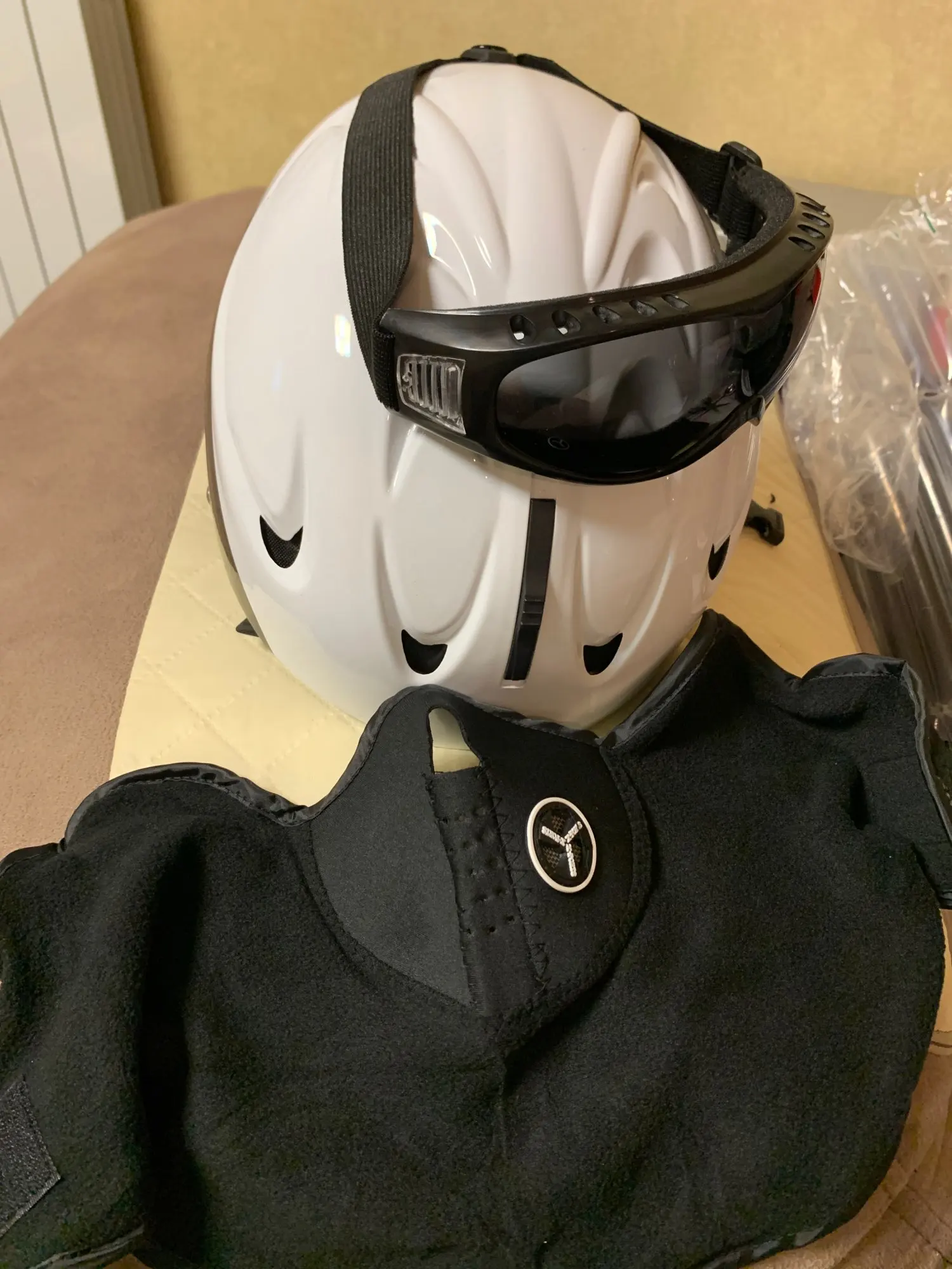 Шлем выглядит хорошо, раньше просто небыло таких, тока мото, этот лёгкий. По размеру подошел на 61. Съемные наклалки внутри. Очки неочем. Маска с закрытым горлом, но даже здесь есть прорезь для носа, чтобы дышать воздухом, а не CO2, Так как это очень вредно. А еще недавно выяснилось что многие партии масок, я про якобы медецинские, пропитаны опасным раствором, который затрудняет обмен кислорода попадая в кровь. Изучайте инфу, спасайте себя.