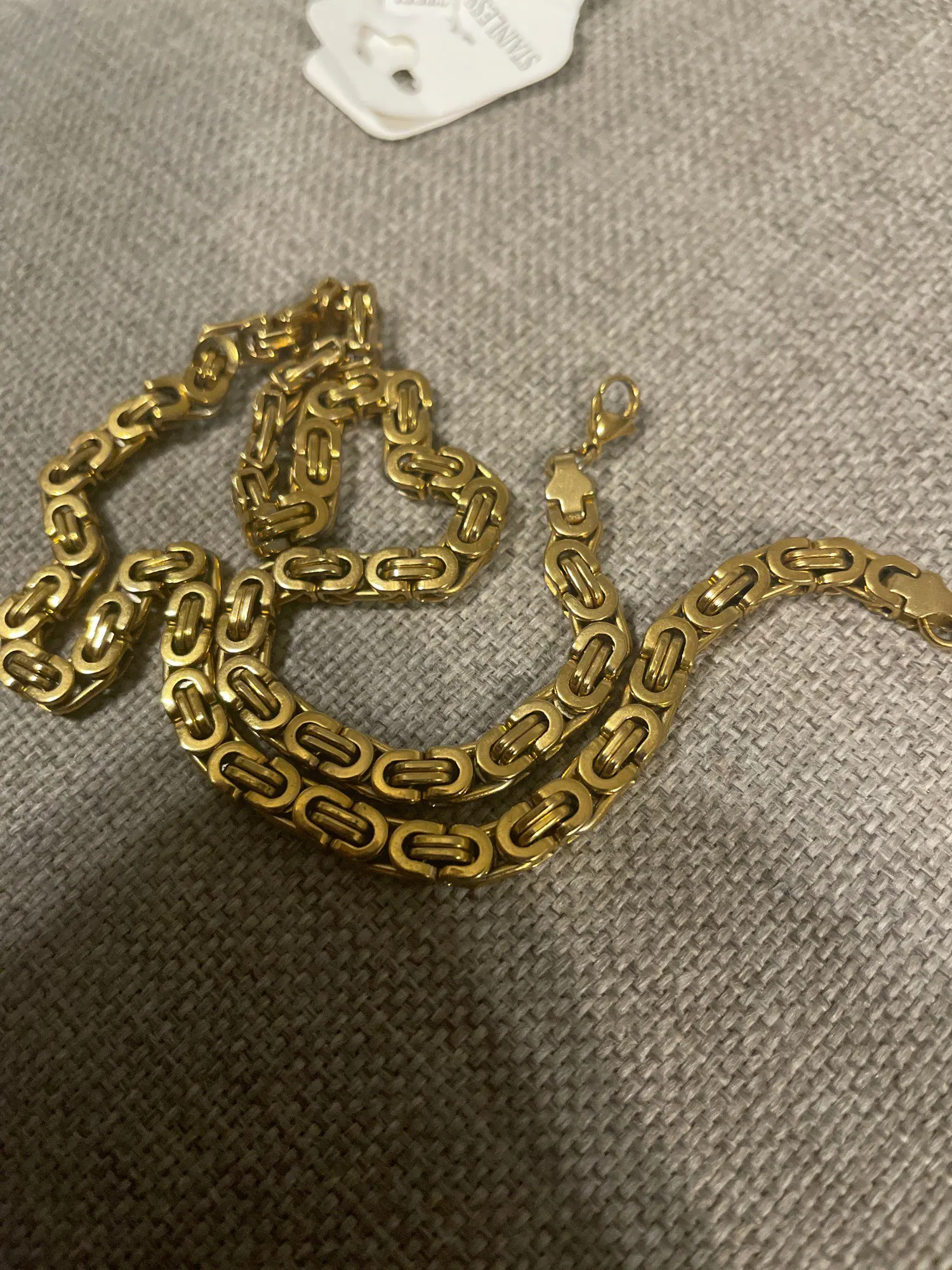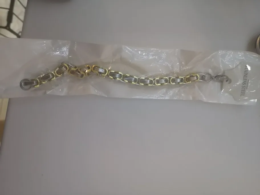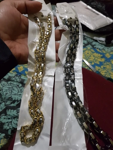 наконец то пришла моя посылка!!! после заказа несколько дней не присылали трек номер. потом прислали трек номер, и посылка вроде поехала. потом она зависла на какой-то типа почтовой станции и тишина. спустя 10 дней написал продавцу, и алелуя!!! посылка снова поехала. совпадение, не думаю.))) короче с горем пополам, приехала она. с задержками шла примерно месяц с небольшим. что касается товара, все чётко цепь толстая, красивая, в меру увесистая. брал 8 милиметров, так она оказалась в толщину с мой мизинец) )) а вот с браслетом, немного не угадал. заказал 18 см, оказался прам впритык, на фото видно. буду ещё заказывать браслет, только 20 - 22 см для мужской руки!!