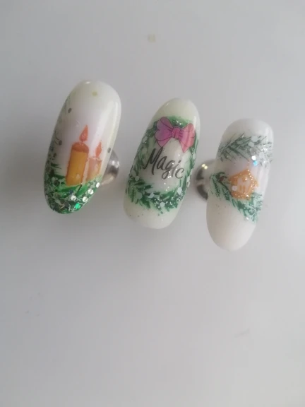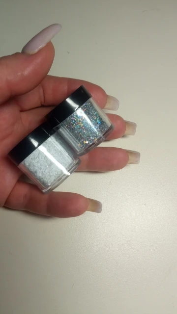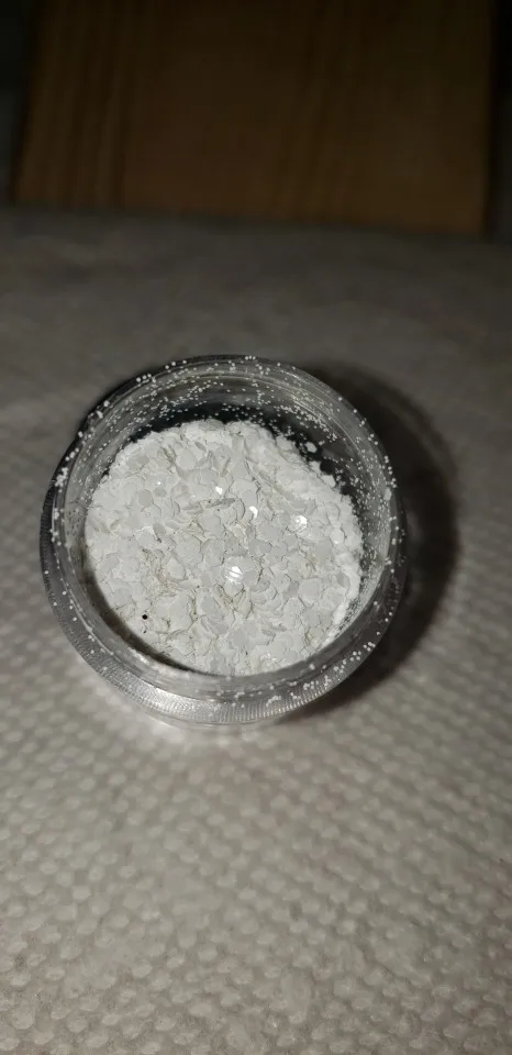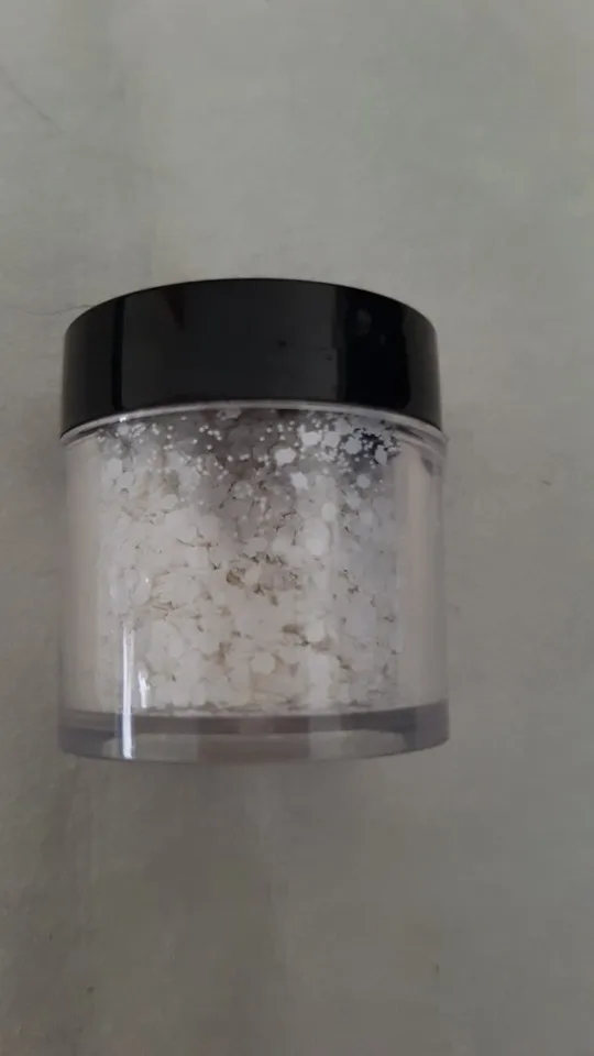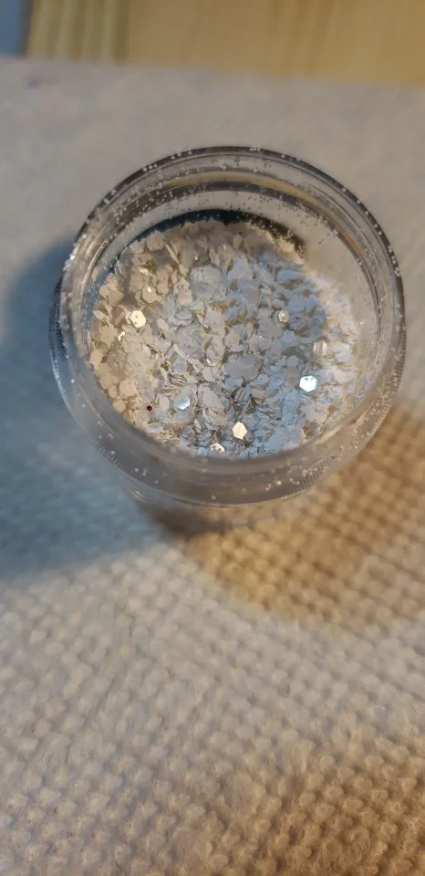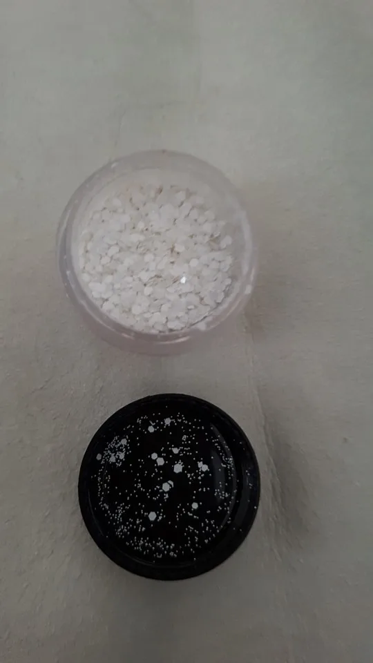 то, что нужно на новогодний маникюр, просто белая россыпь шестигранников с мелкими элементами, без блеска. баночка большая, объемом как 2-3 обычные