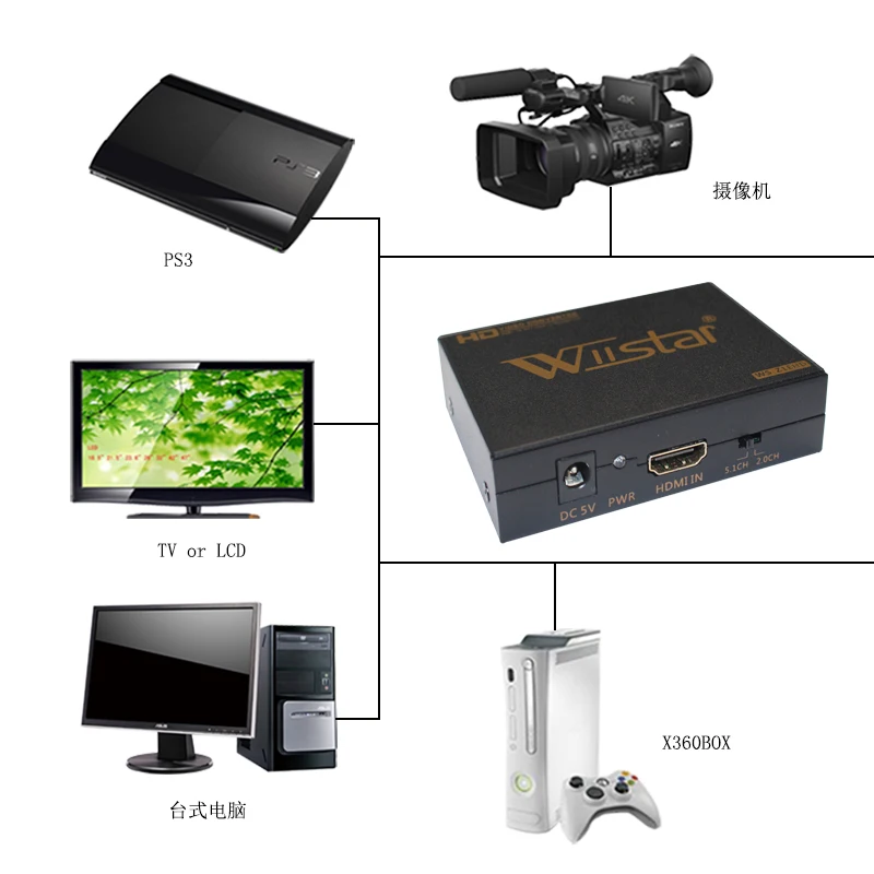 Коаксиальный аудиоконвертер 1080P HD Video HDMIDVI для PS4 Xbox1