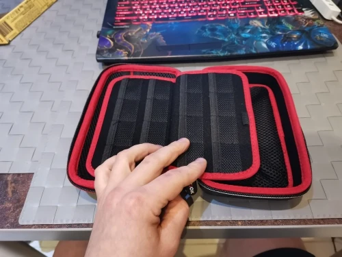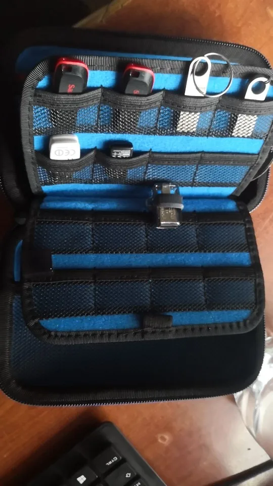 Хорошо сделанный кейс, но если вы берете его для, например, флешек и жесткого диска, то не особо получится все это уместить. У меня влезло более-менее 5 флешек, хард и зарядник с маленькими кабелями и он уже еле-еле закрывается. Все же не лучший выбор для такого.
