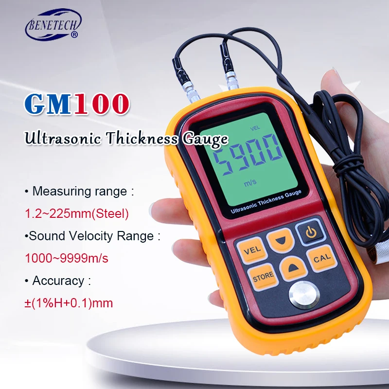 Ультразвуковой измеритель толщины GM100, прибор для измерения толщины металла, толщиномер 1,2-225 мм (сталь) цифровой ЖК-дисплей, измеритель скорости звука 0,1 мм разрешение