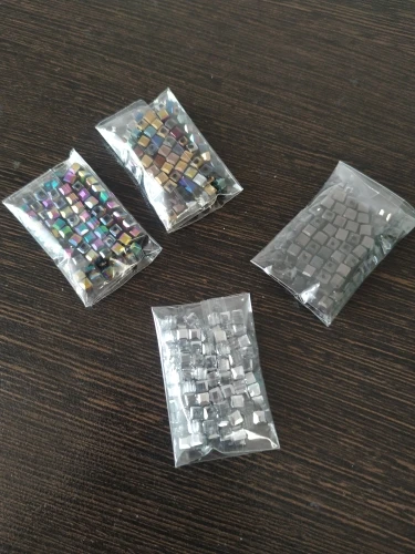 Стеклянные кубики хорошего качества . Все ровные, одного размера. Цвет красивый и блеск .
