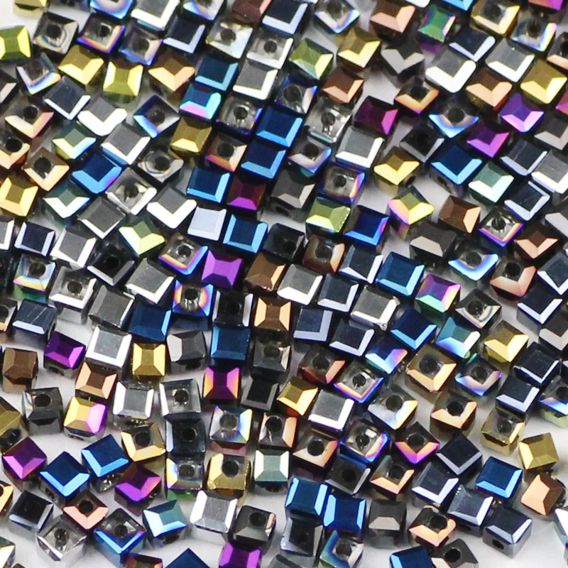 Квадратные стеклянные бусины, из австрийского хрусталя, квадратные, 3 мм, 100 шт., незакрепленные бусины, аксессуары для браслетов для самостоятельного изготовления ювелирных изделий