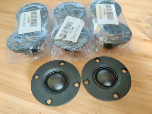 Доставка прошла раньше заявленного срока. Динамики были надёжно упакованы. Описание достаточно точное, хотя посадочный размер для отверстия в передней панели указан не был. Омическое сопротивление соответствует. Динамики установлены вместо сгоревших пьезоэлектрических твиттеров в акустические системы Technics. Клеммы соответствуют оригинальным. По внешнему виду идеально вписались в дизайн фронтальных панелей. В качестве пищалок работают нормально.