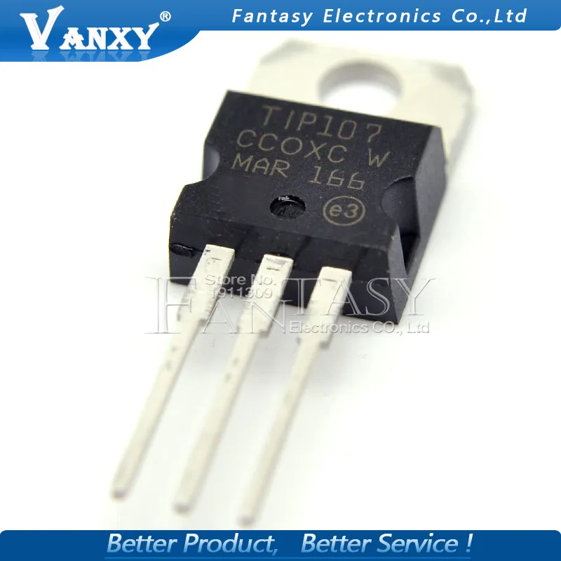 Доставили за 18 дней, неплохо. Смущает то, что надпись на транзисторе смещена влево так, что часть буквы не видна, уточняю не "TIP 107", эти буквы с цифрами тоже смещены влево, но их видно хорошо, а буквы под ними, в любом случае это наводит на нехорошие мысли, вряд ли добросовестный производитель будет так косячить.