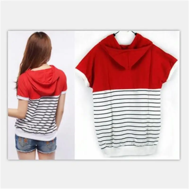 Футболка женская размера плюс с коротким рукавом, Спортивная свободная Модная рубашка в полоску, хлопок, в Корейском стиле, на лето