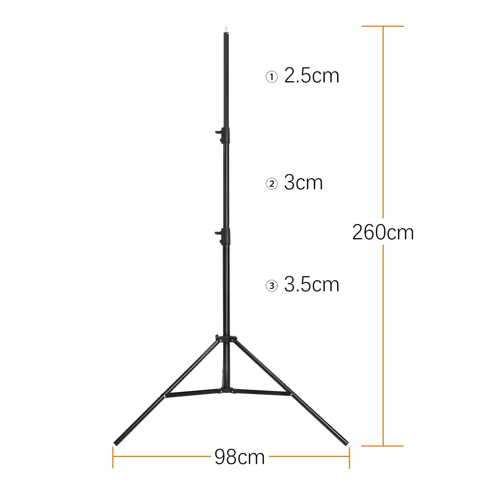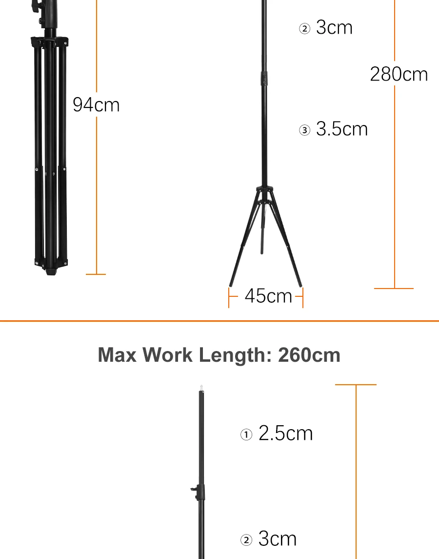 Этот светильник изготовлен из металла и имеет трехступенчатый регулируемый вал и резиновые ножки, придавая ему исключительную прочность для тяжелой работы.Его Твердые возможности блокировки обеспечивают безопасность вашего осветительного оборудования при использовании.Этот светильник имеет максимальную высоту 280 см.Этот светильник имеет максимальную высоту работы 260 см.Этот стенд поддерживает все основные фото оборудования, включая отражатели, софтбоксы, огни, зонты, фоны и многое другое.