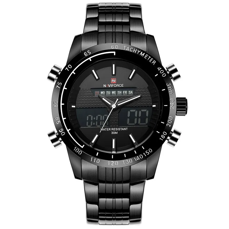 Часы наручные NAVIFORCE Мужские кварцевые, роскошные брендовые водонепроницаемые полностью стальные, с датой, повседневные спортивные