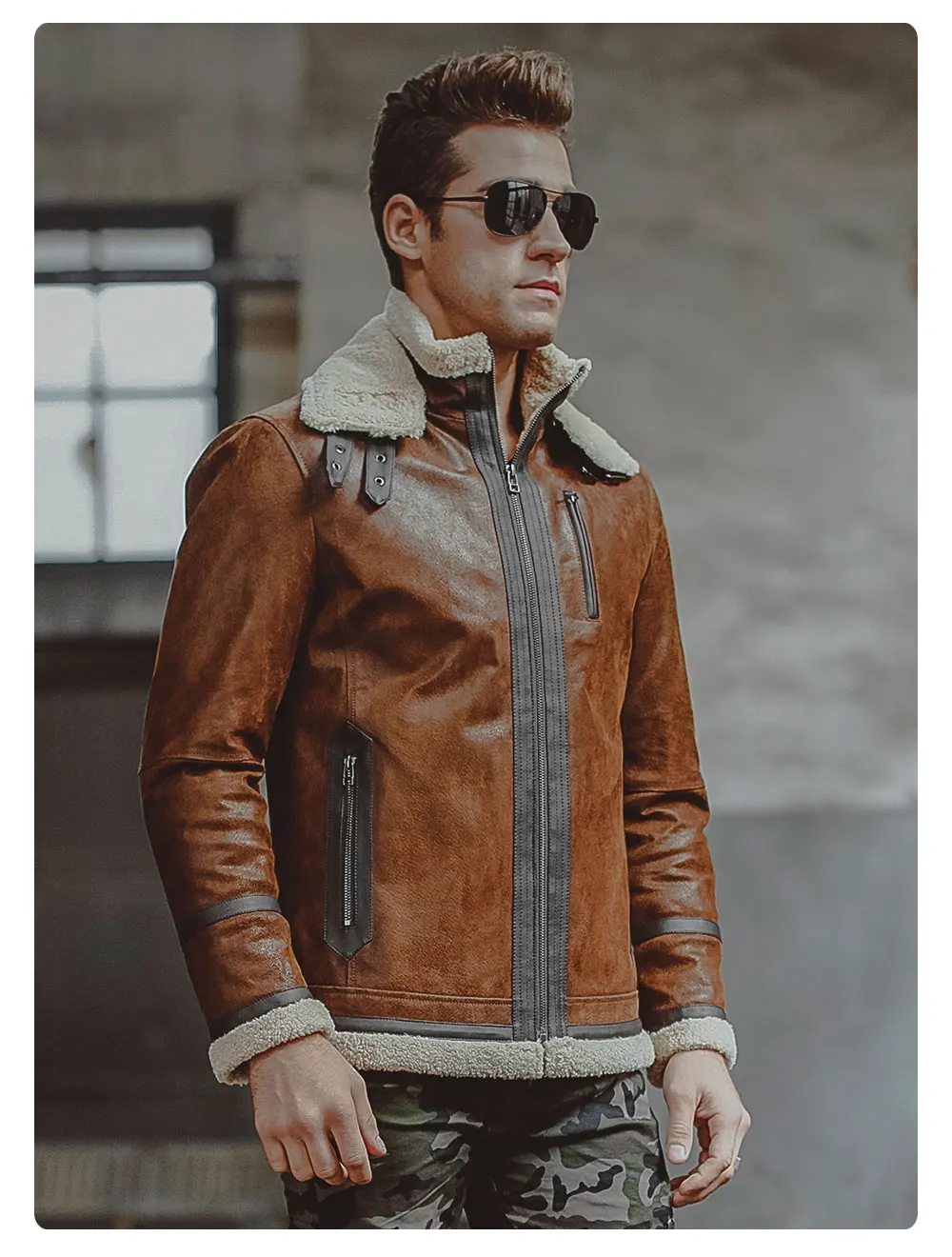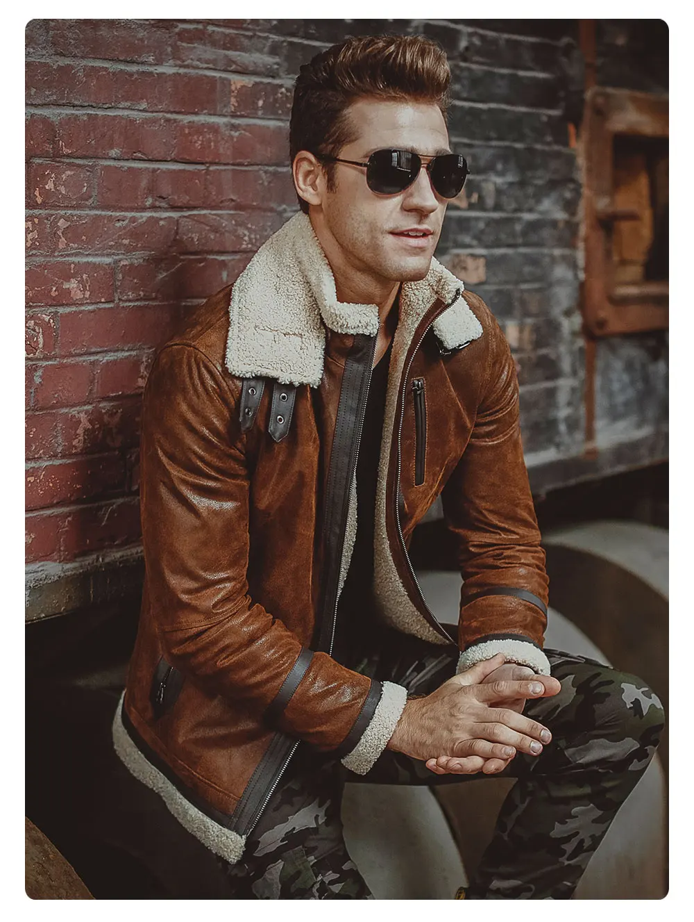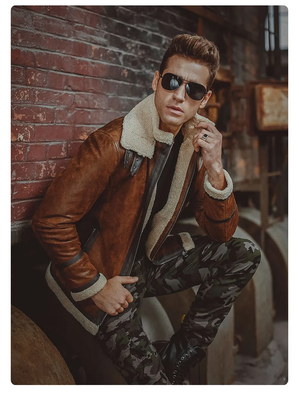 Мужская мотоциклетная куртка из свиной шкуры, теплая летная куртка-...