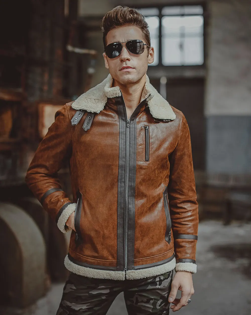 Kожаная куртка мужская авиаторские жакеты из натуральной кожи, летн...
