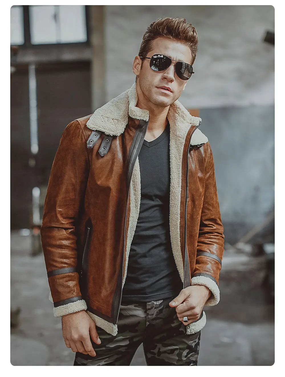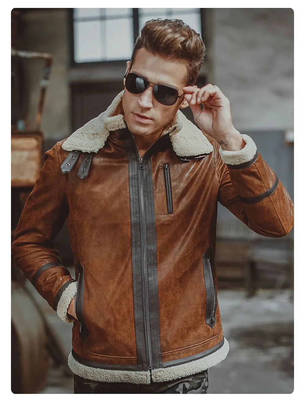 Мужская мотоциклетная куртка из свиной шкуры, теплая куртка из натуральной кожи с подкладкой из искусственной овчины, пальто для зимы