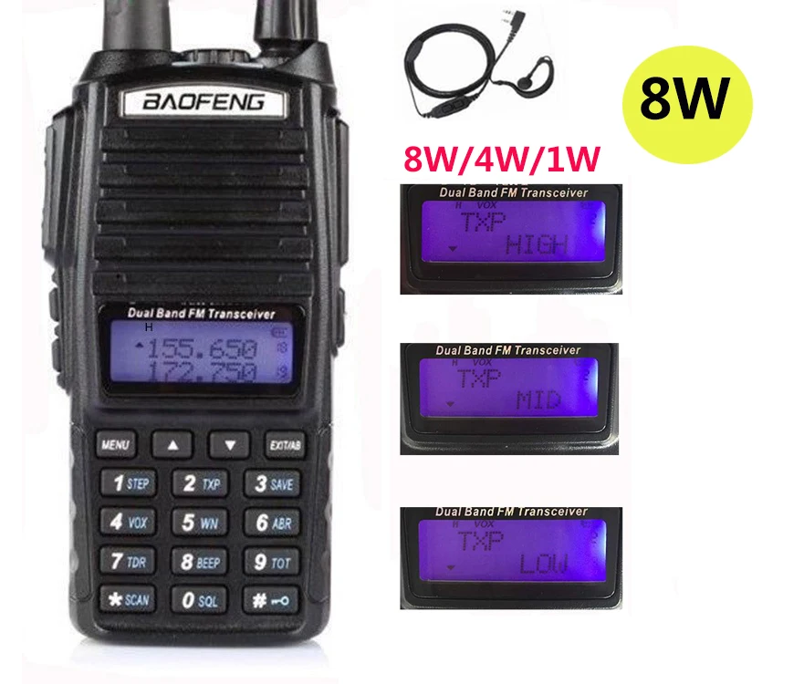 1 xbaofeng uv-82 Настоящее 8 Вт иди и болтай walkie talkie