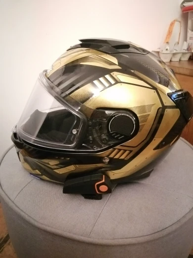 Recibido bien embalado y en buen estado, fácil de montar y de conectar. Se escucha francamente bien, merece la pena. Puedes escuchar música, recibir llamadas y emparejar los dos para comunicarte moto a moto. A 120km se escucha bastante bien.