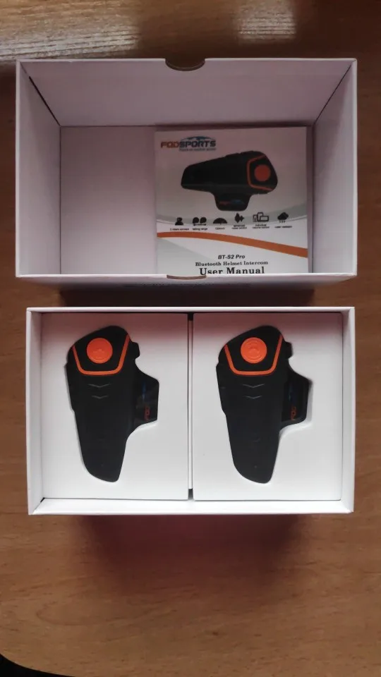 Курьер принёс домой, доставка 4 дня! Упаковано хорошо, всё как в описании, всё работает. Настроили сразу 2 устройства, проверили связь между собой, управление смартфоном, громкость, радио. Установили в шлемы без проблем. Всё идеально слышно, не трещит. Осталось дождаться весны и использовать по назначению. Спасибо.
