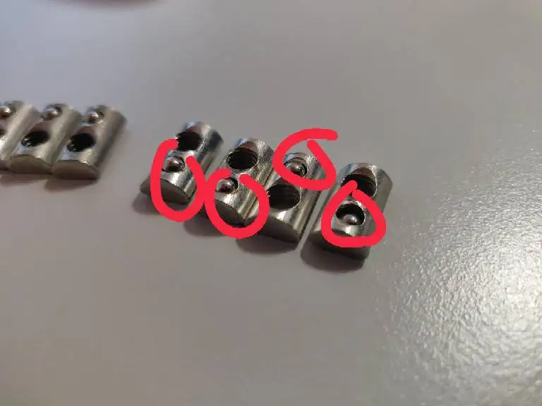 Непоследовательный размер, не все гайки могут быть вставлены в экструзию из средней точки. Очень разочаровывает. Необходимо нарезать края на мочках орехов.