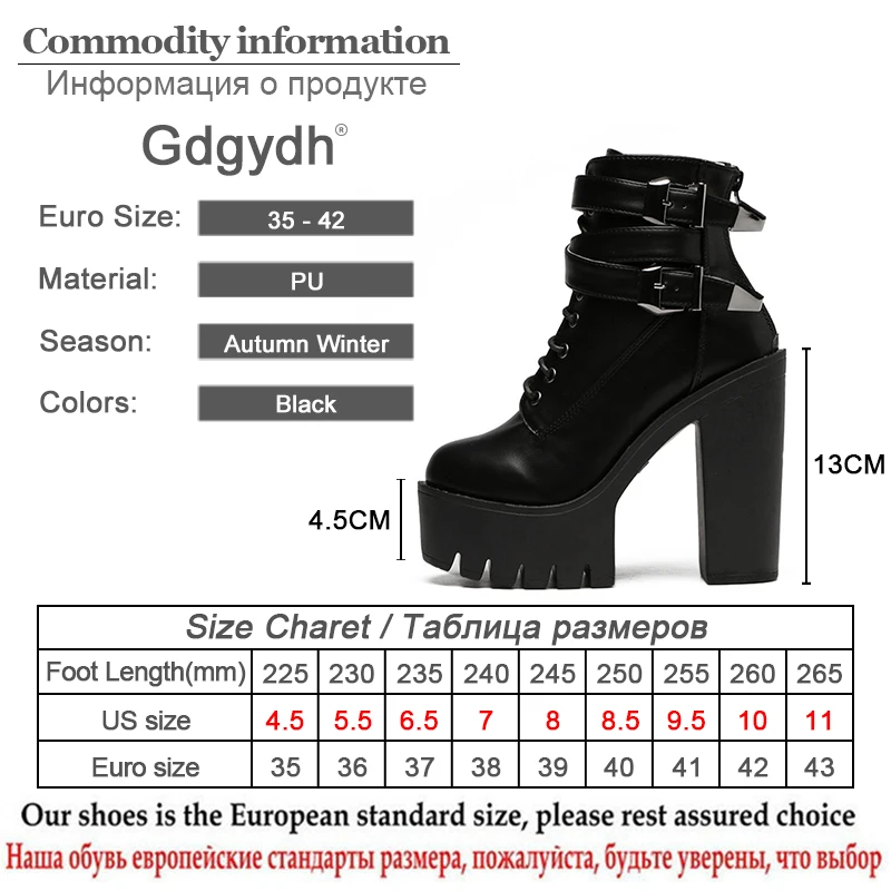 Ботинки женские Gdgydh, черные, кожаные, на высоком каблуке, платформе, с пряжкой, на шнуровке, для весныОсени