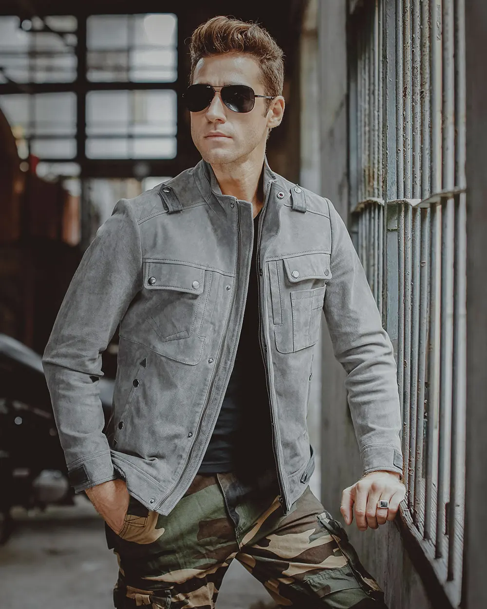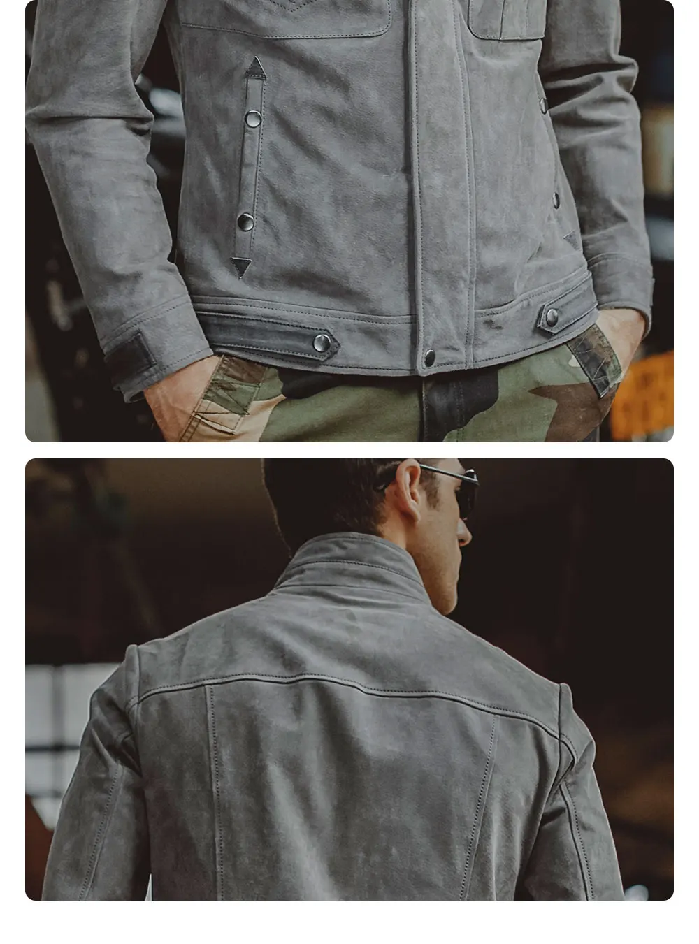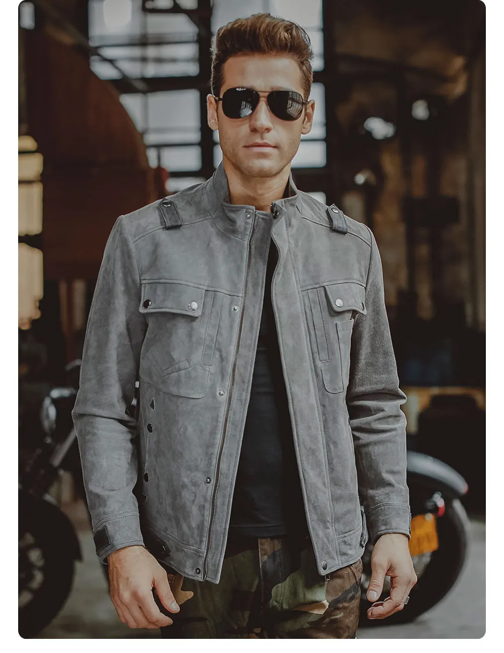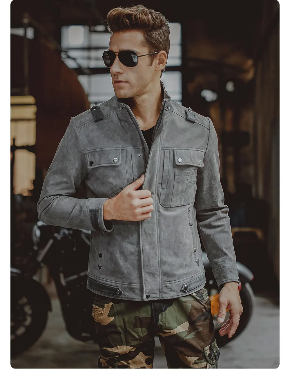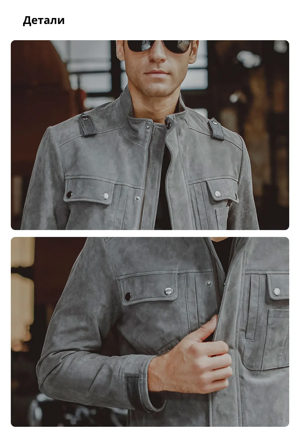 Kожаная куртка мужская мотоциклетный жакет, куртка из натуральной кожи, пальто из свиной шкуры серого цвета