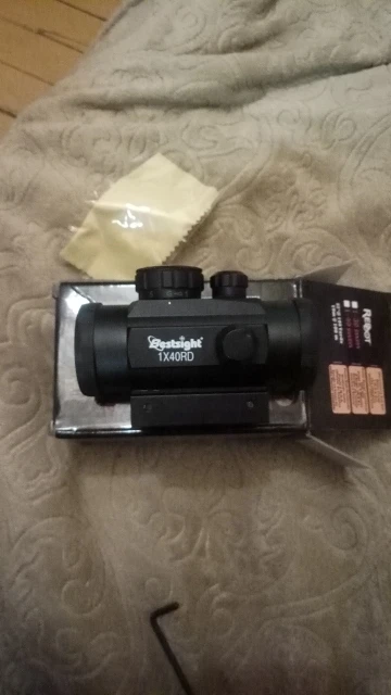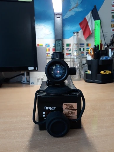 Выбрал самую маленькую версию. заказал 27 ноября в воронеж. пришло 5 января. Прицел поставляется в маленькой коробочке, с шестигранничком и тряпочкой для линзы. плюс резиновый колпачок на прицел. точка регулируется отверткой, хода достаточно, всё работает. зажим на планку подпружинен. Сразу покрасил под общий комплект с приводом. В общем, нормально для страйка, для чего то посерьёзнее не уверен, что он сгодится. Мал да удал..