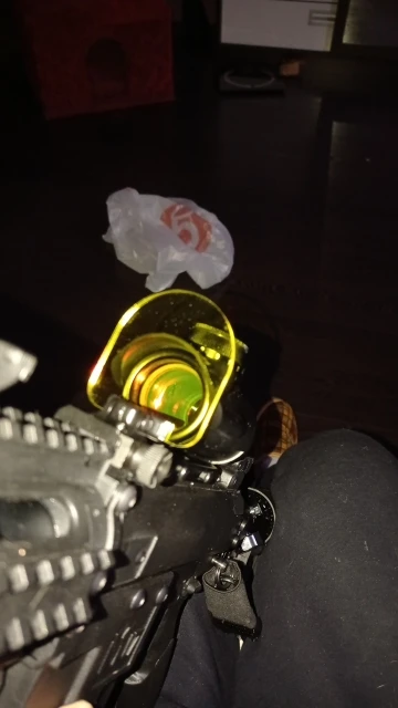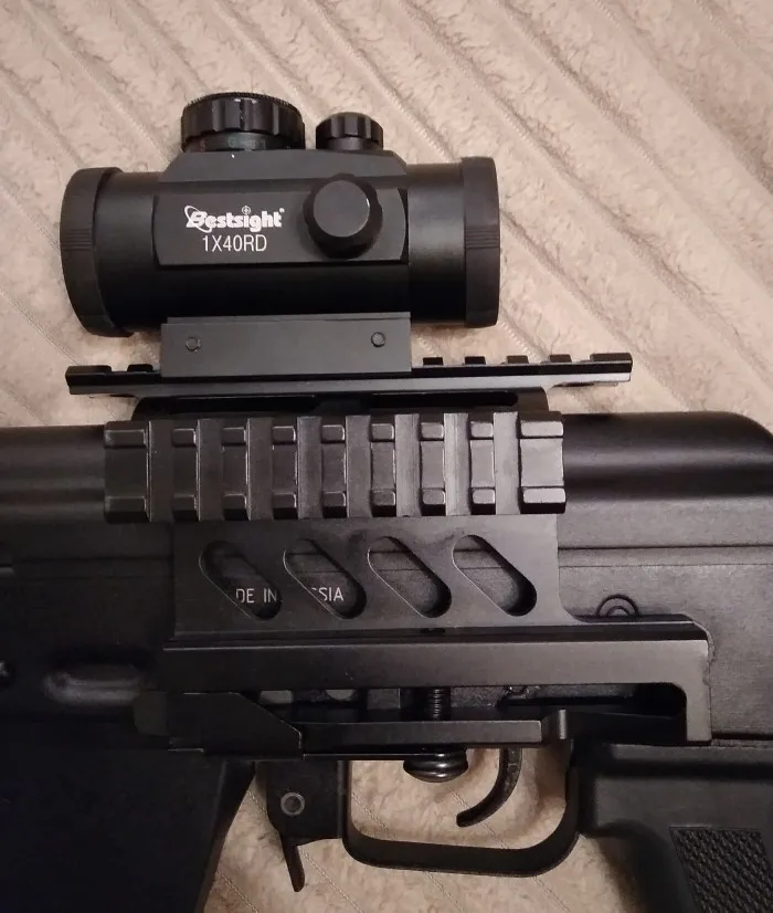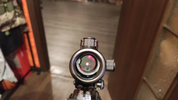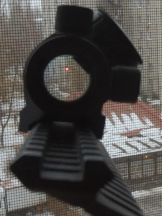 Хорошо собранный прицел, встал на привод страйкбольный как влитой. Точка достаточно яркая, но чуть размыта, для страйкбооа вообще не критично. Так же пробовал на пневматика, и на привод и на пневмат удалось пристрелять