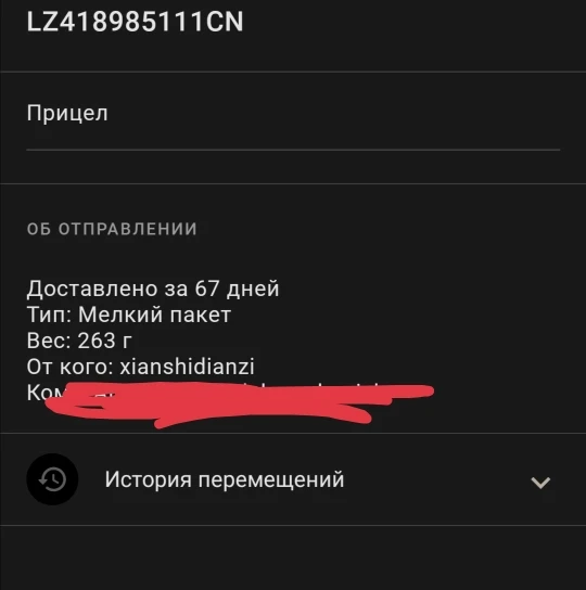 Товар не отслеживался, пришёл в течении 1,5 месяца , упаковано хорошо, работает исправно, без брака, в комплекте тряпочка шестигранник сам прицел у прицела 2 крышки, батарейка в прицеле + запасная(китайцы молодцы) чтобы мы делали без китайцев )