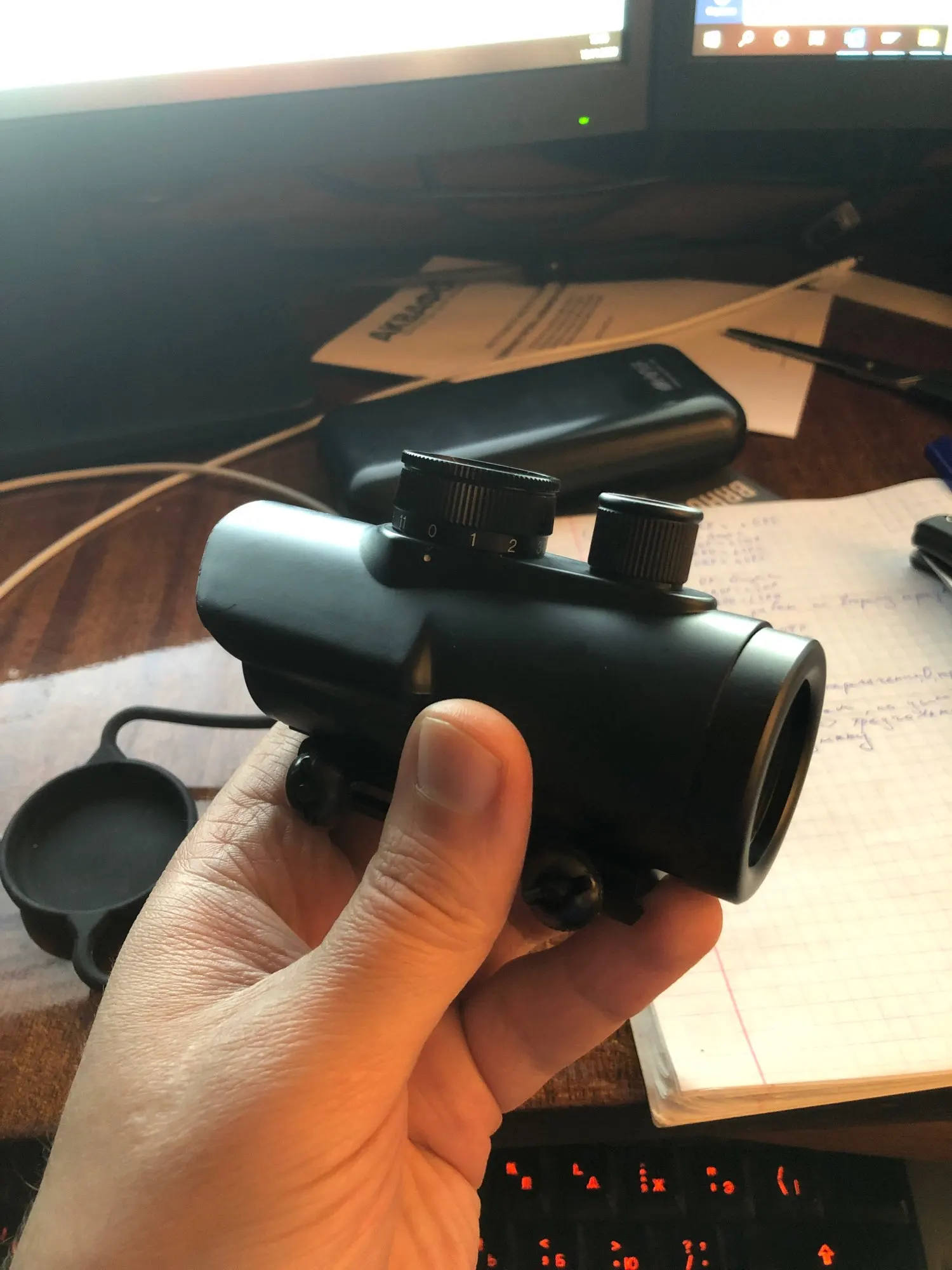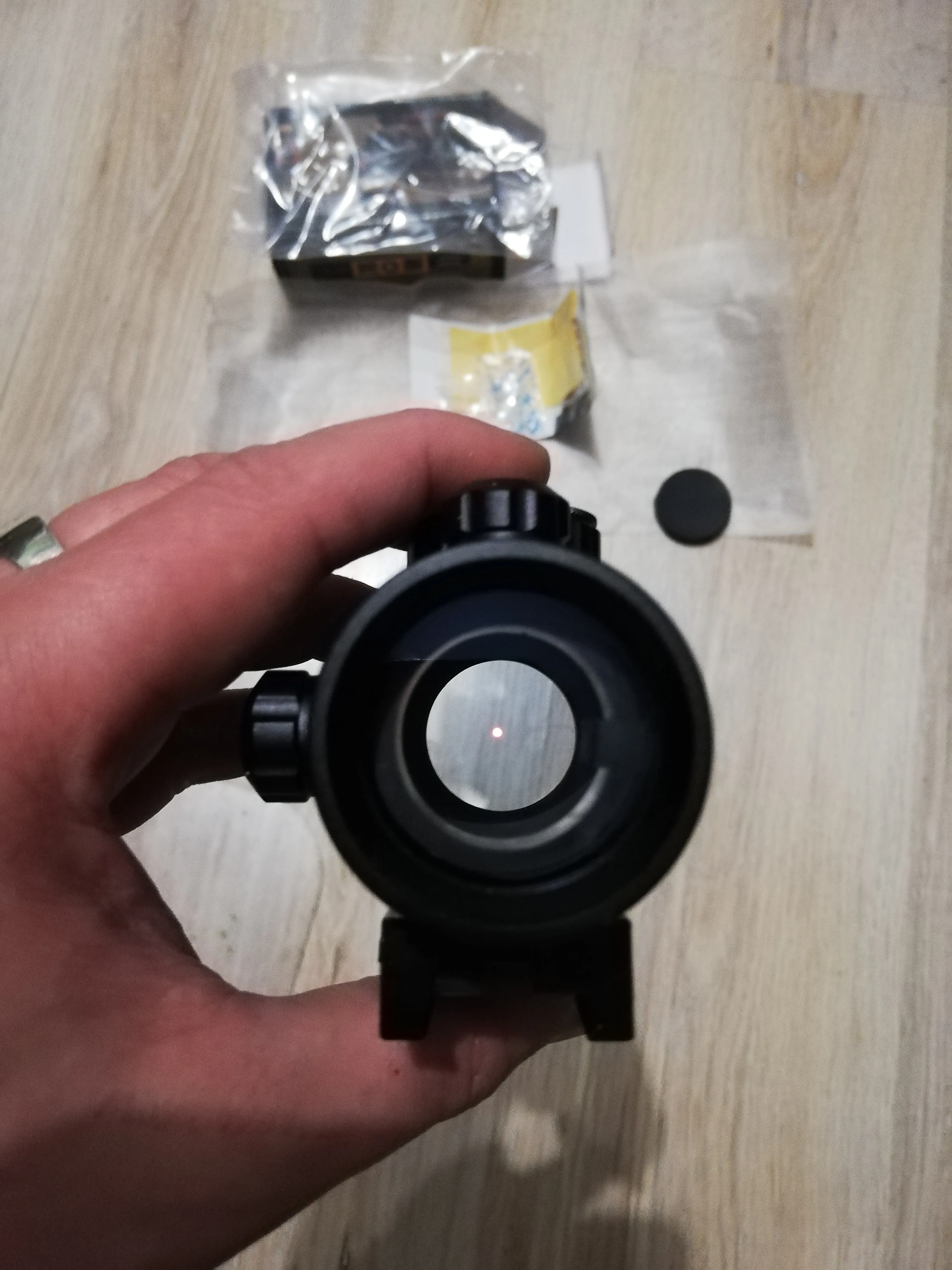 Прицел хорошего качества. В комплекте Батарейка, шестигранник, прицел заааернут. Огромный минус. Это самая долгосрочная доставка в моей жизни. Два месяца посылка находилась в Китае, а затем чудесно за неделю приехала в Ростов. То-ли продавцу было лень было отправить, то-ли почта в Китае сломалась)
