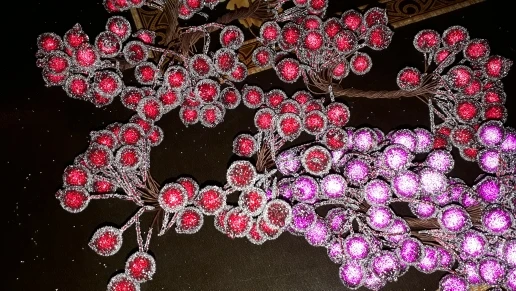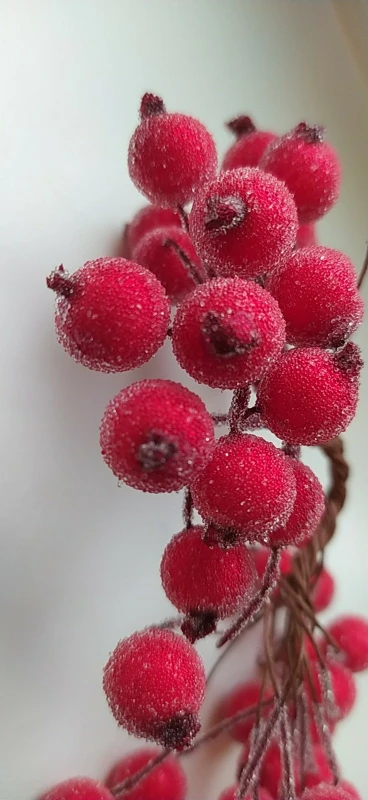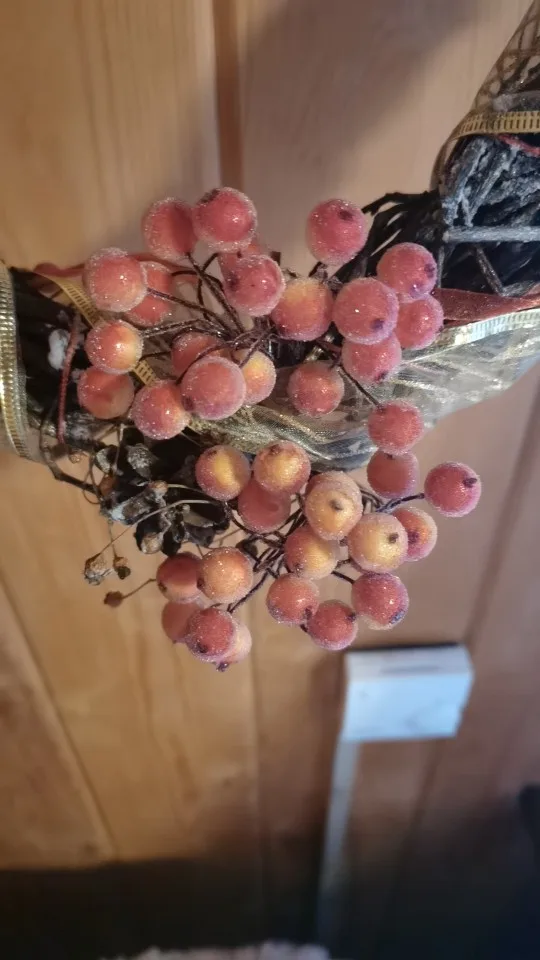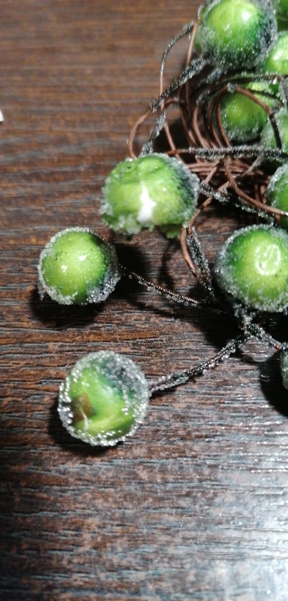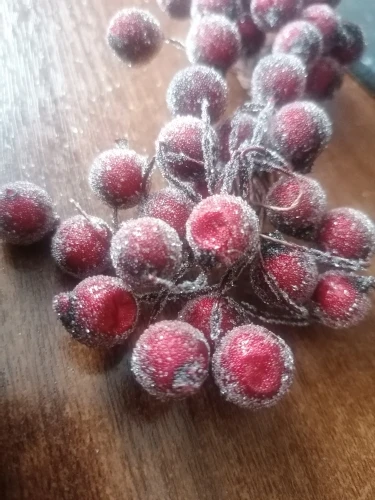 Очень красивый декор. Ягодки словно в инее. Выглядит красиво и изящно, отлично впишется в новогодний декор. Проволока веток позволят разделить связку и использовать каждую отдельно. Отправка быстрая, доставка тоже порадовала. Буду заказывать еще.