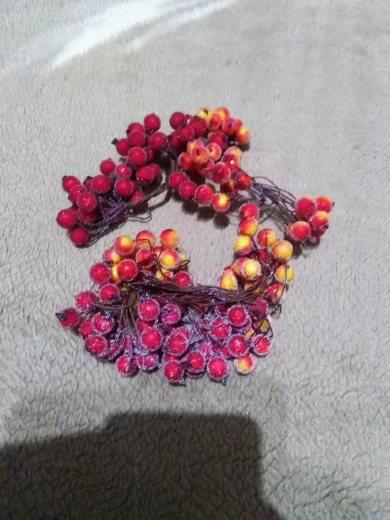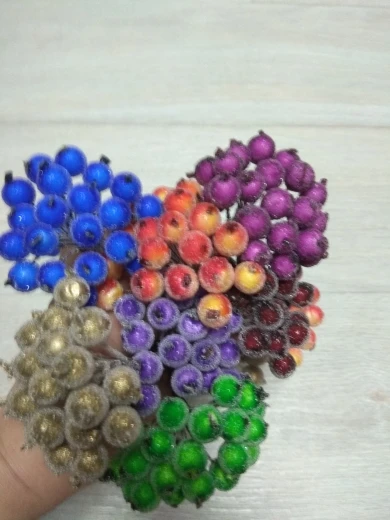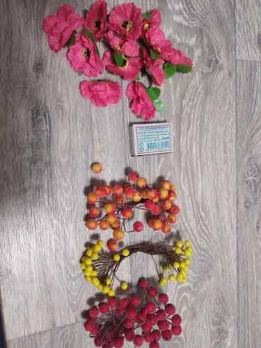 Очень понравились ягодки, немного осыпались, но это не страшно, запаха нет вообще, проволока качественная хорошо гнется, цвета яркие, советую всем этого продавца, сама буду ещё не раз заказывать товары с этого магазина и доставка очень быстрая, понравилось все