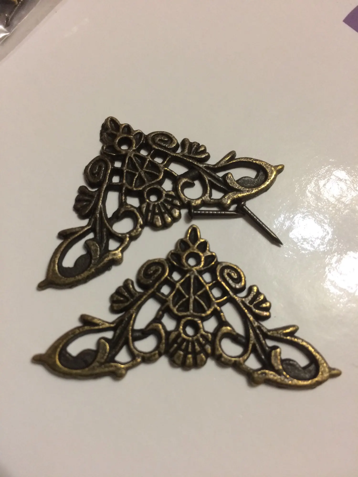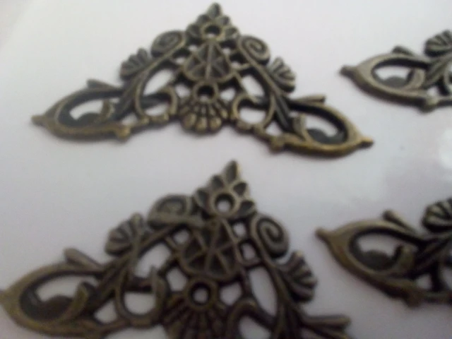 Этот набор из 4 углов бронзы полностью соответствует своему описанию и фотографии. Вы можете сверлить их (зубные карандаши), но вы можете просто приклеить их универсальным клеем на любой опоре, это работает очень хорошо! Я рекомендую эту статью!