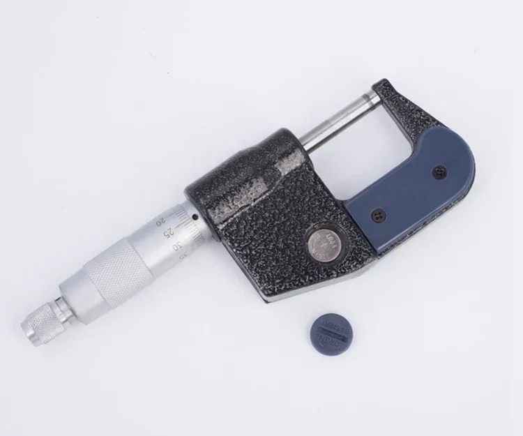 Ok. Получил микрометр в синей пластиковой коробке. Батарейка в комплект не входит. Поставил свою. Работает. Очень извращенное управление питанием. Кнопки включения и выключения нет. Если долго и внимательно читать инструкцию, то включить все же можно. Выключить невозможно - есть только авто выключение, что совсем неудобно. При редких измерениях батарейка расходуется не рационально. При диапазоне измерений 0-25 мм калибр в комплект не входит. В остальном покупкой доволен. Полезный для меня инструмент