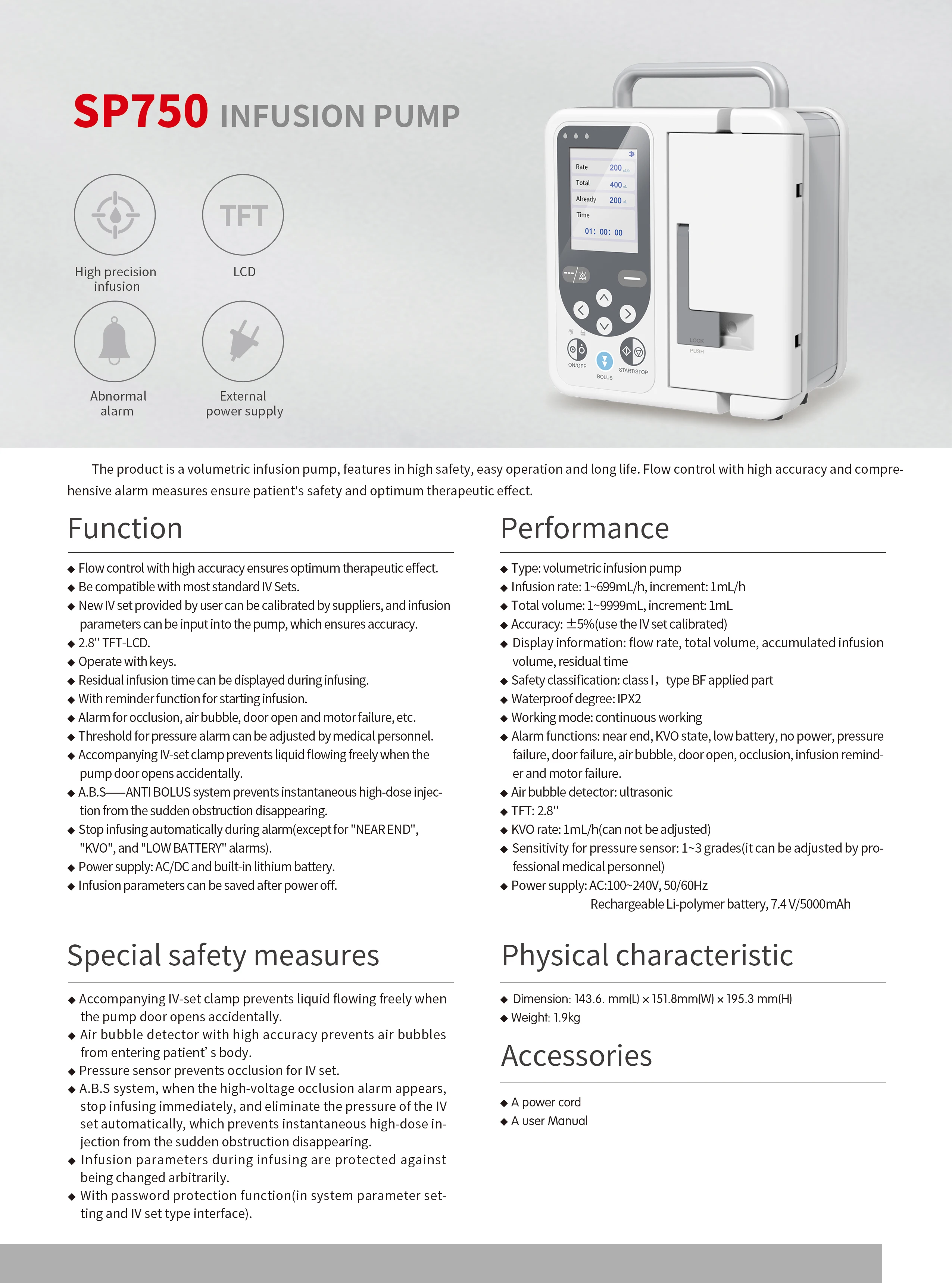 Новинка 2021, инфузионный насос CONTEC SP750 с большим ЖК-дисплеем и будильником в режиме реального времени