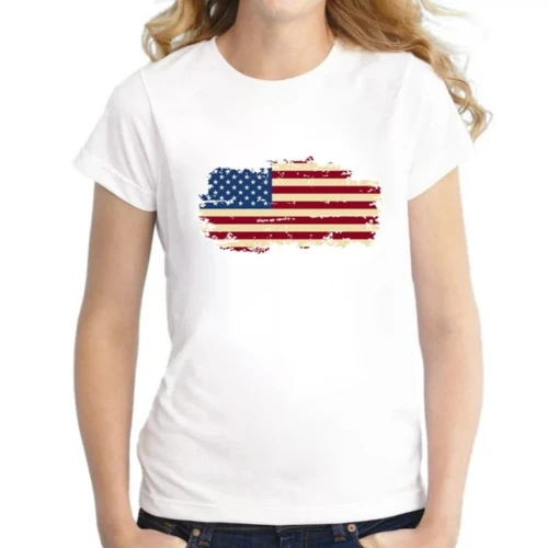 Футболка BLWHSA женская с флагом США, хлопок, короткая рубашка в стиле ностальгии, флаг США