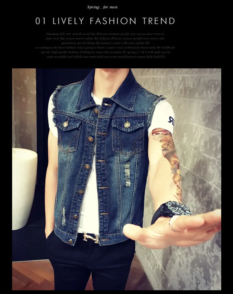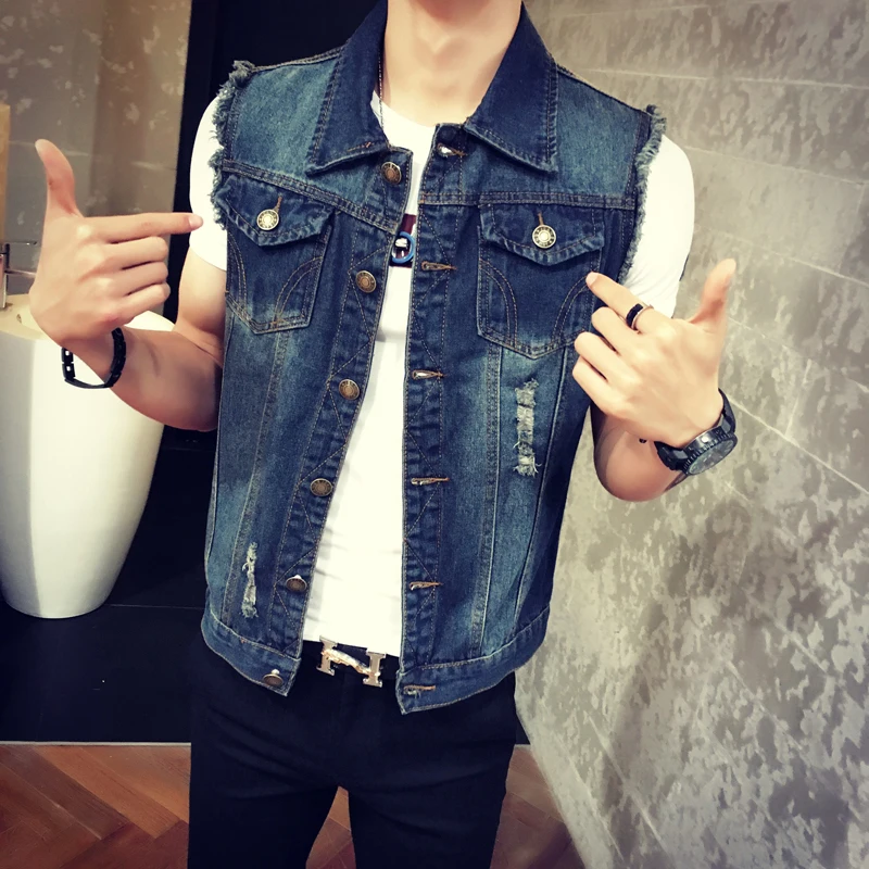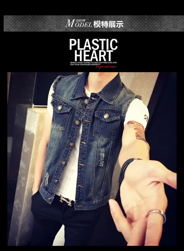 Мужской джинсовый жилет, облегающий жилет из джинсовой ткани, без рукавов, в стиле пэчворк, 2 цвета, 2020