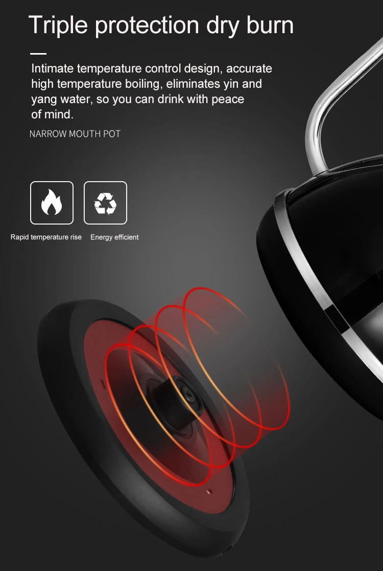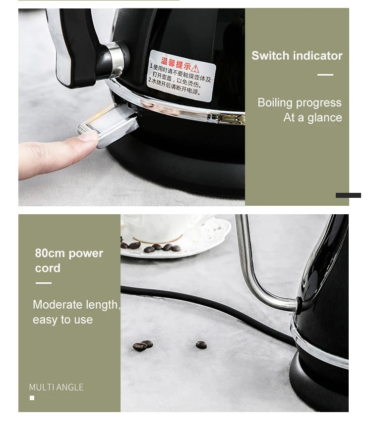 Электрический чайник DMWD из нержавеющей стали, 1 л, капельная гусиная горловина, длинное горлышко, подогрев горячей воды, котел, обогреватель, ЕС, США