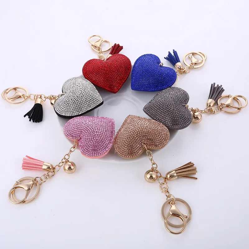 Брелок для ключей ZOSHI в форме сердца, металлический кристалл, брелок для ключей с кожаными кисточками