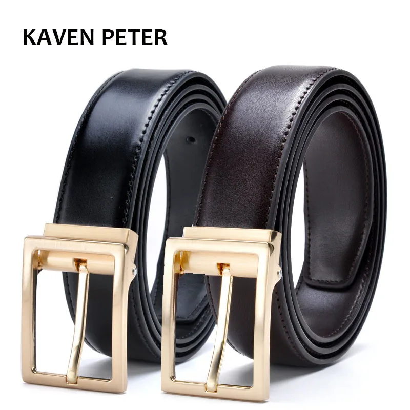 Ремень мужской из натуральной кожи, Роскошный деловой пояс с золотистым металлическим ремнем для брюк