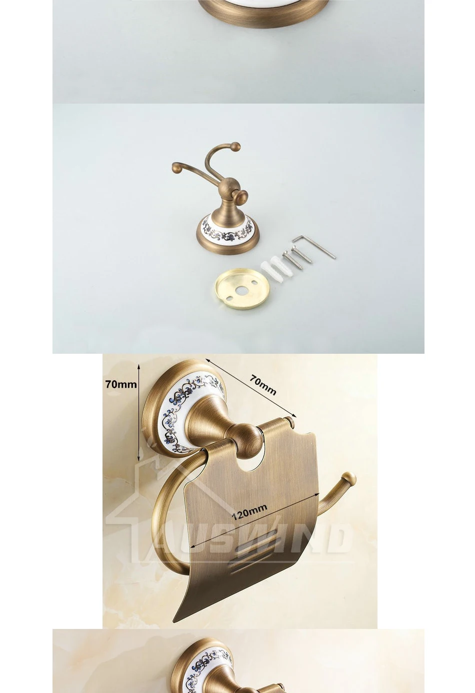 Античные Твердые латунные бронзовые наборы для ванны, матовое фарфоровое основание, аксессуары для ванной комнаты, настенные Товары для ванной rg6