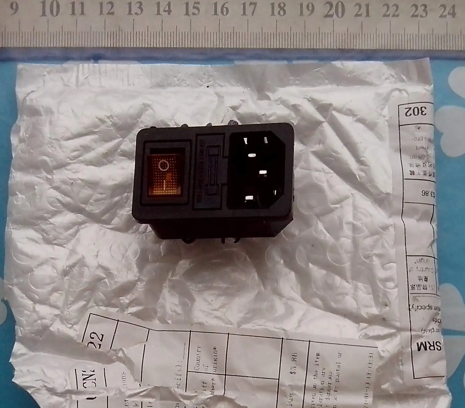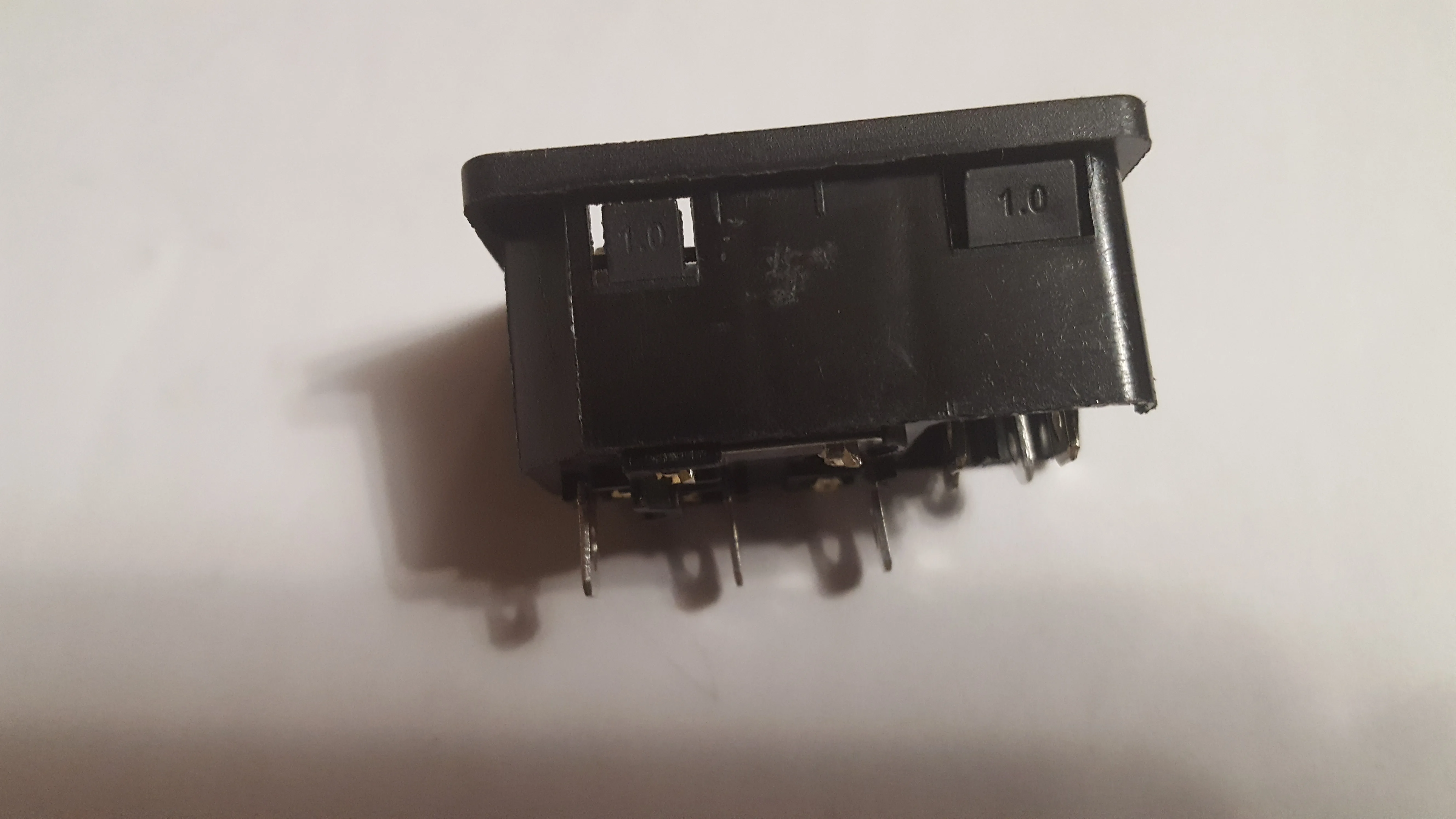 Устройство исправно; Описание: Предусмотренно четыре защёлки (на длинных сторонах корпуса). Пластмасса, внешне, хорошая (заказал с чёрным тумблером, выглядит брутально); Предохранитель съёмный, в съёмной колодке) - 10 A (Fuse, 250V AC); Длина предохранителя - 20 мм; Тумблер двухполюсный, съёмный - 6 A (250V AC); Ламели контактные и провод тумблера - в комплект не входят. Проходной сопротивление, неболее - 0,3 ом; Упаковано в стандартный конверт (типа "пупырка"); Две незначительных царапины, и незначительно погнута одна контактная ламель (от транспортировки); Не существенный облой в точке литья; Продавец общительный.