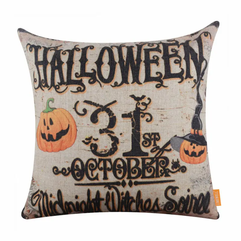 LINKWELL 18x18 дюймов наволочка Мешковина наволочка Ретро счастливые украшения для Хеллоуина, тыква 31 октября сезонный Декор для дома