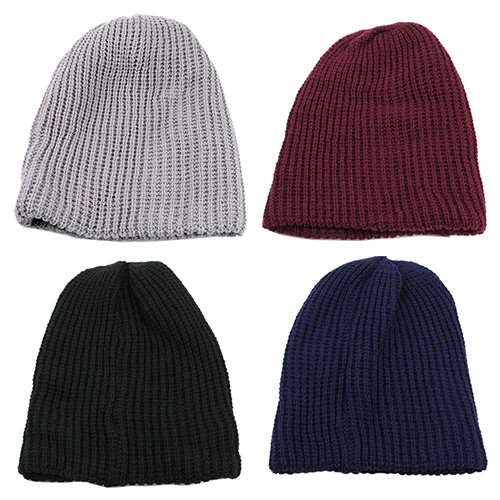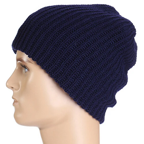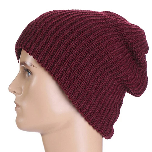 Шапка-бини мужская вязаная мешковатая, с вертикальной полосой, 2021