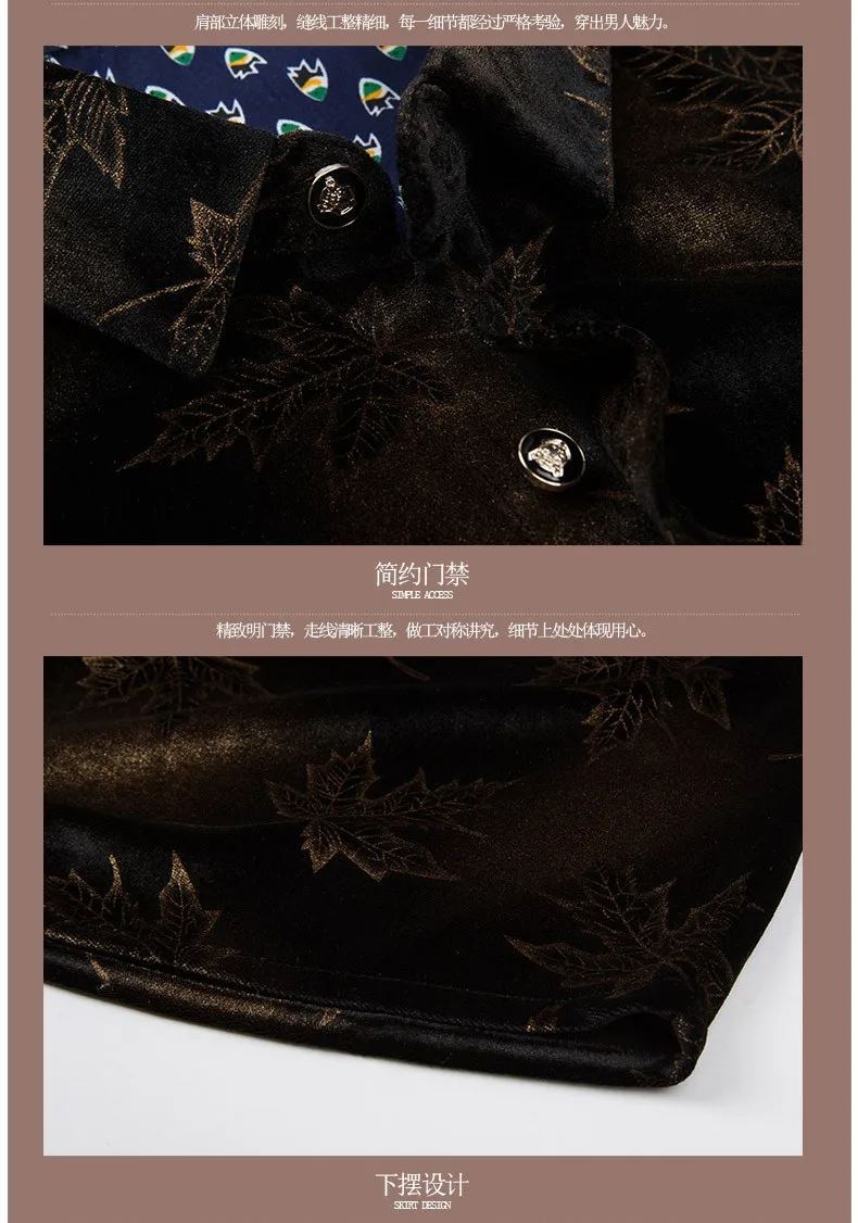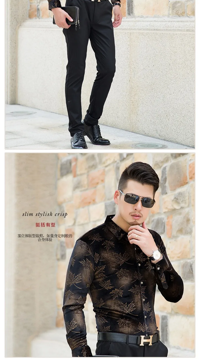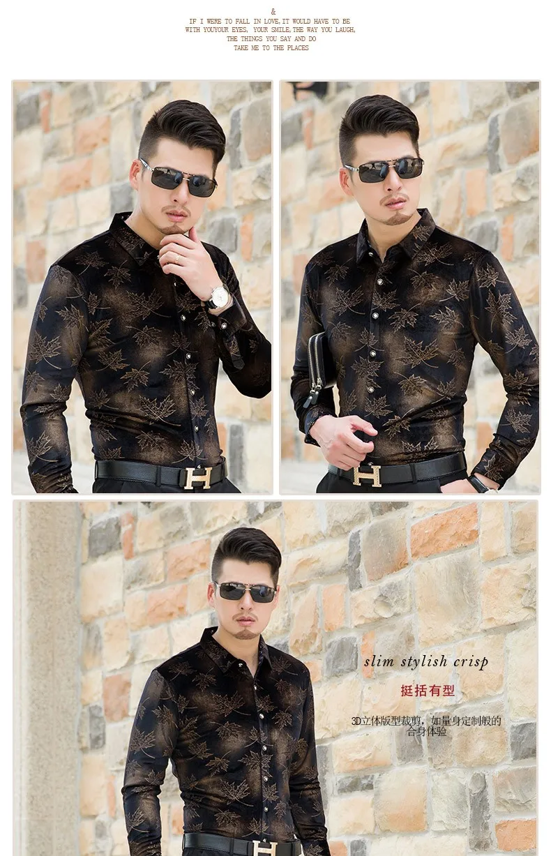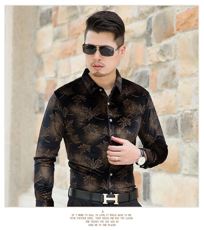 Мужская бархатная рубашка с длинным рукавом и принтом