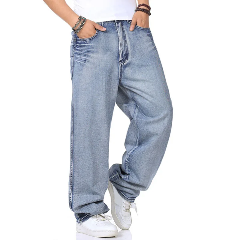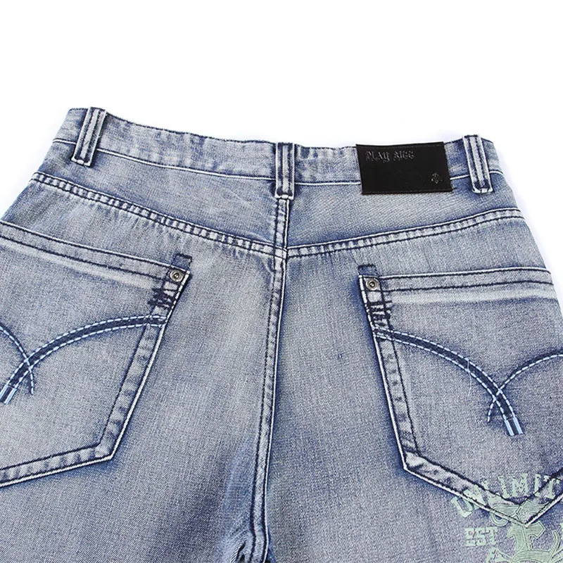 Джинсы мужские свободные для скейтбордиста, винтажные брюки из денима в стиле ретро, с принтом букв, с широкими штанинами и вареным эффектом, в стиле хип-хоп