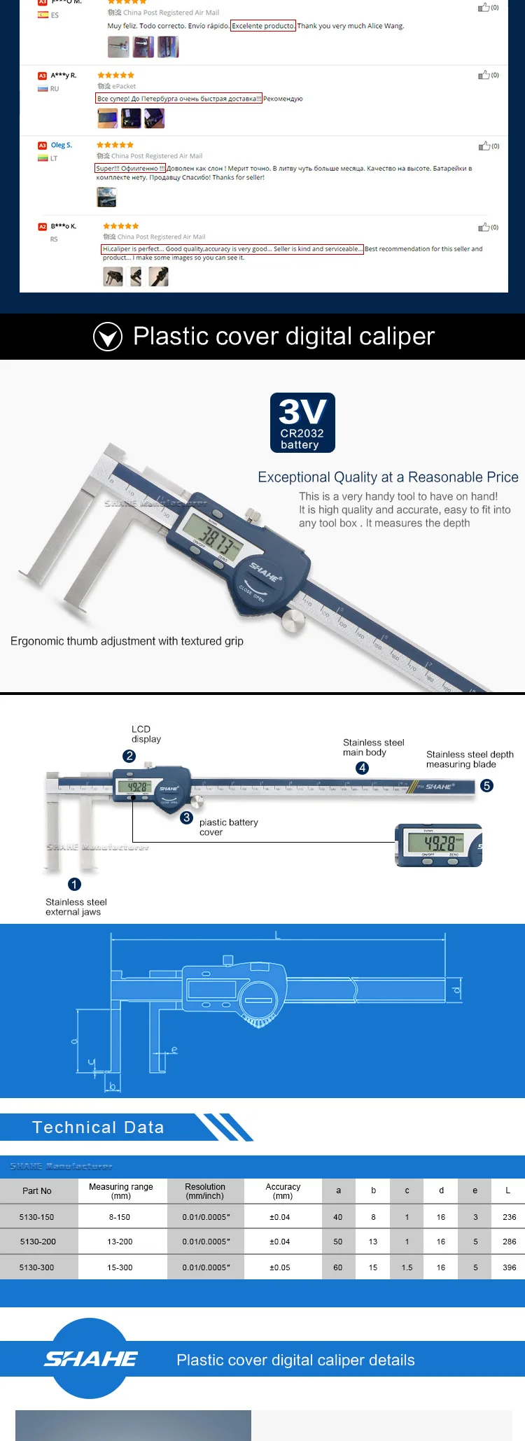 Модель: 5130-300Диапазон измерения: 15-300 ммРазрешение: 0,01 мм/0,0005 дюймовТочность: ± 0,05 ммТип батареи: 3 В литиевая батарея CR2032Тип: цифровой Внутренний штангенциркуль для измерения пазов с кромкой ножаЕмкостный преобразователь сетки: стеклянная фиксированная сеткаЗащита: IP54Дисплей: ЖК-дисплейВыход данных: ДаАккумулятор: 3 в CR2032Функция: вкл/выкл, нулевой набор, дюйм/мм, Автоматическое включение/выключение, с фиксатором