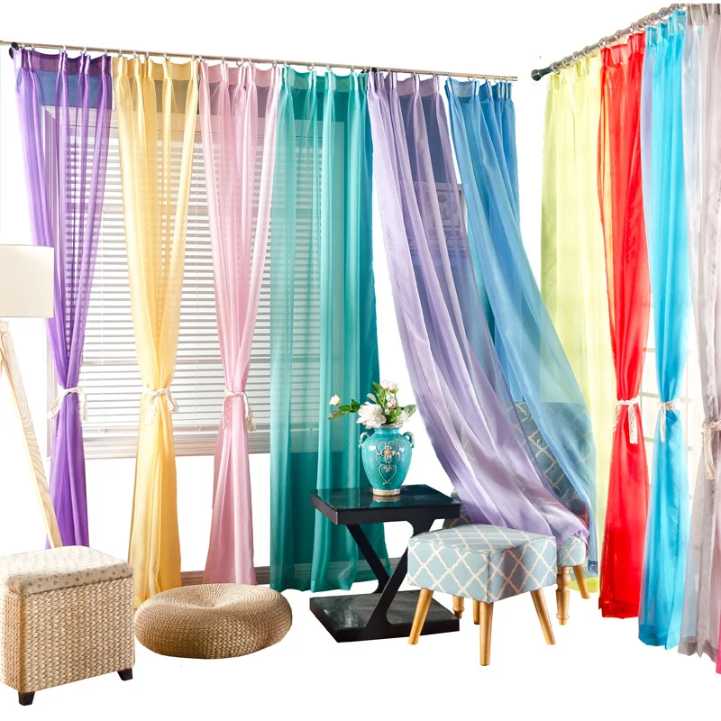 Горячая Распродажа радужные однотонные шторы из вуали для дверей и окон, драпировка, прозрачный тюль для домашнего декора, гостиной, спальни, кухни, P184D15