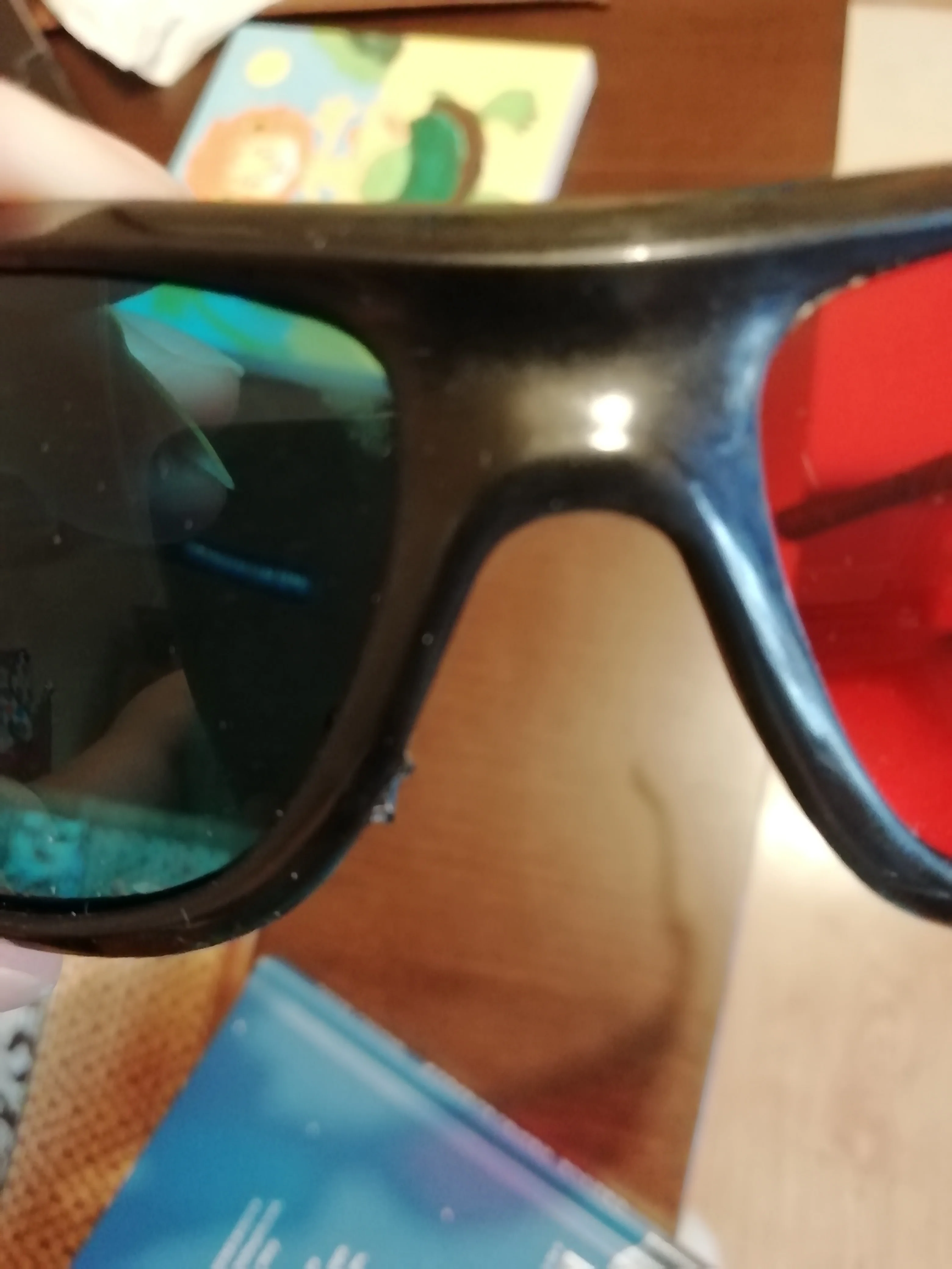 Не знаю, в этих ли очках дело (другие не пробовал), но я в них плохо воспринимаю 3D-картинку. Подозреваю, что в других очках было бы то же самое. Сами же очки, как и ожидалось - просто дешёвая пластмассовая оправа для разноцветных стёкол (которые, тоже не стёкла, а пластик)