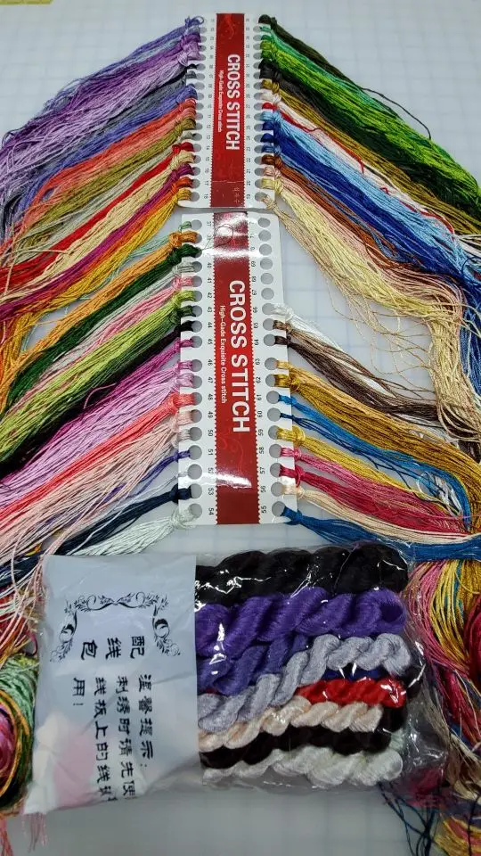 Overall pretty satisfied with this kit. Seller took a little while to ship (moving shops, but didn't know until I messaged about extending process time). Once it shipped, arrived quickly. A little disappointed that the picture size is not as advertised, but still the detail looks quite nice. Came with 5 needles and a threader. The silkened threads are gorgeous! Shiny and bright, hopefully will be enough. This is not my first purchase from this store and will not be my last!