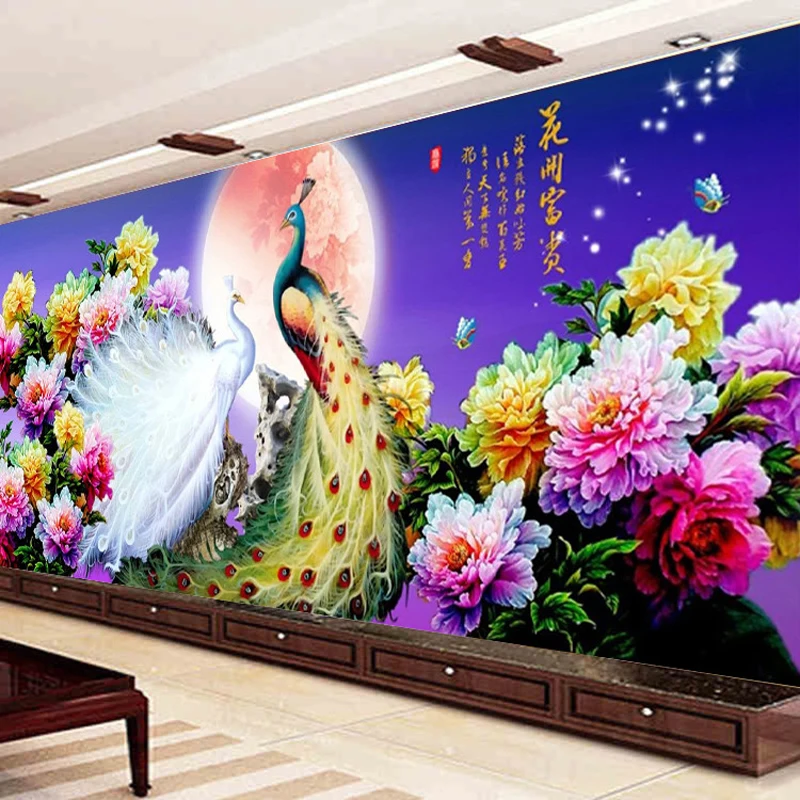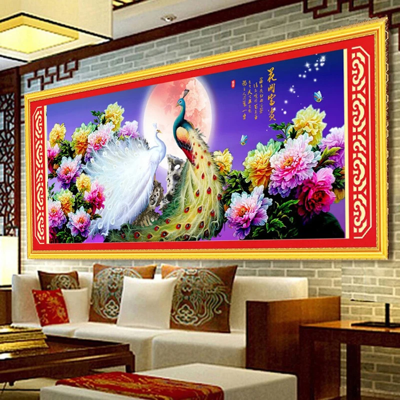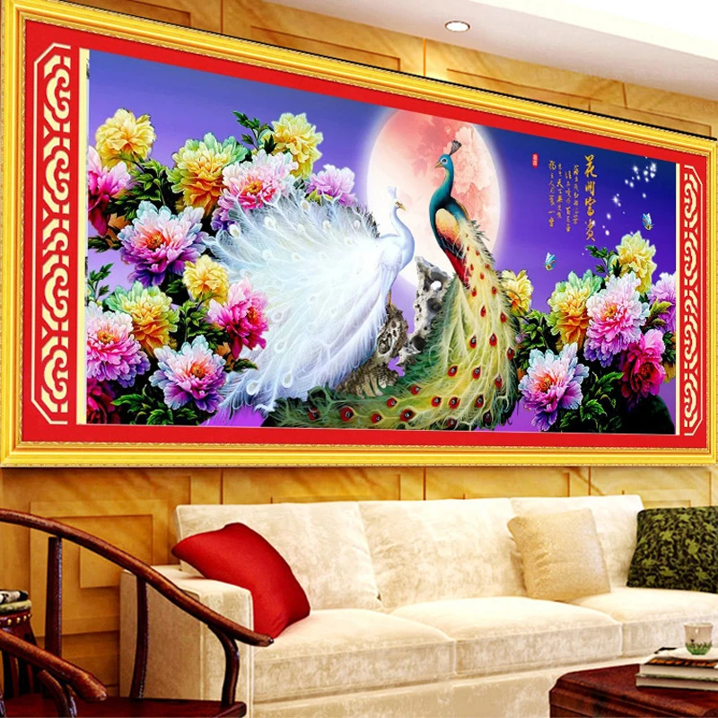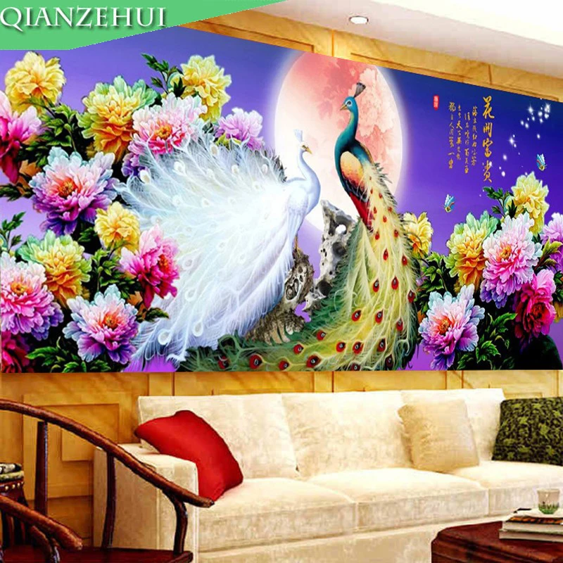 Вышивка крестиком QIANZEHUI, вышивка павлиньими пионами, цветущий эликсир любви, вышивка крестиком в виде пейзажа, Настенный декор